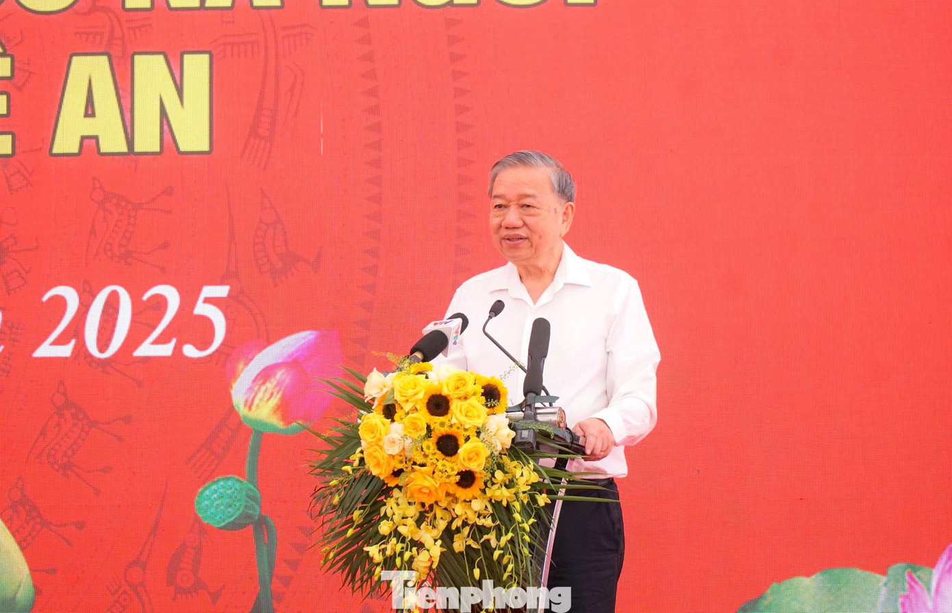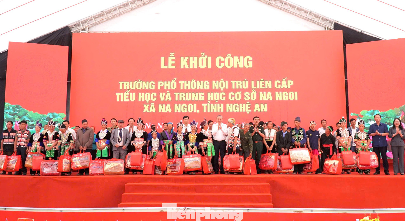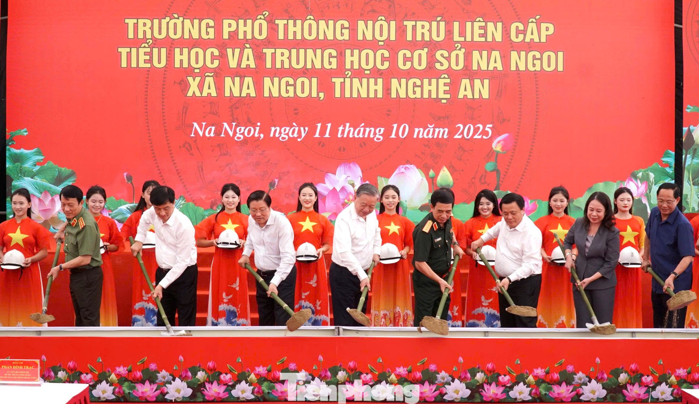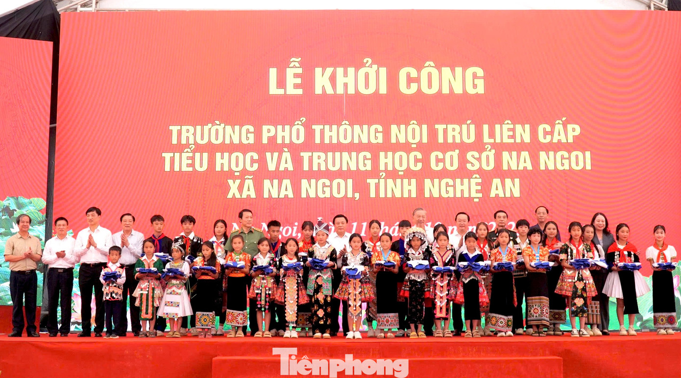 Tổng Bí thư Tô Lâm cùng các lãnh đạo Đảng, Nhà nước, các bộ, ban, ngành Trung ương, lãnh đạo tỉnh Nghệ An tham dự Lễ khởi công xây dựng Trường Phổ thông nội trú liên cấp TH và THCS Na Ngoi.