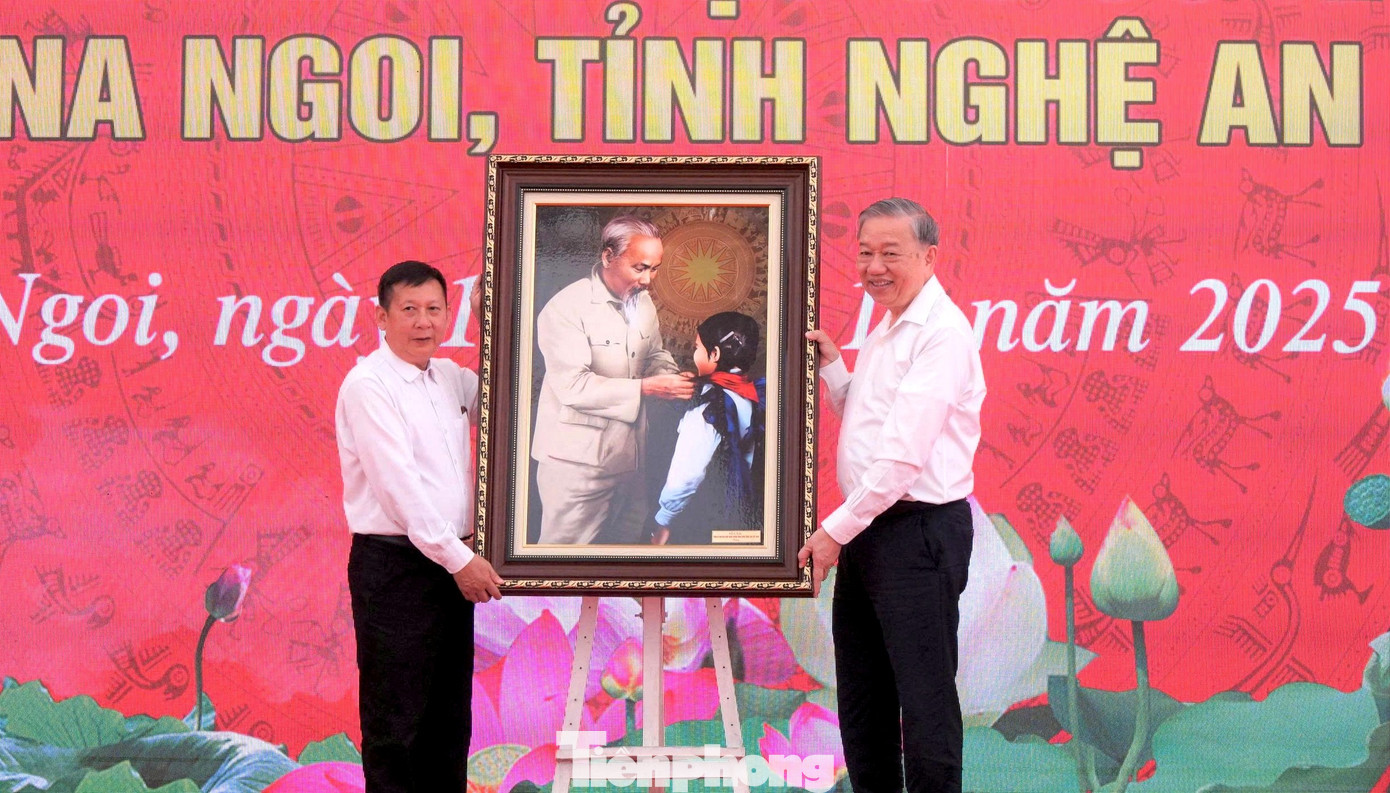 Nhân dịp này, Tổng Bí thư Tô Lâm cùng đoàn công tác đã tặng nhiều phần quà cho các em học sinh trên địa bàn xã Na Ngoi; trao tặng 50 phần quà ý nghĩa cho 50 hộ gia đình khó khăn, gia đình chính sách trên địa bàn xã Na Ngoi.