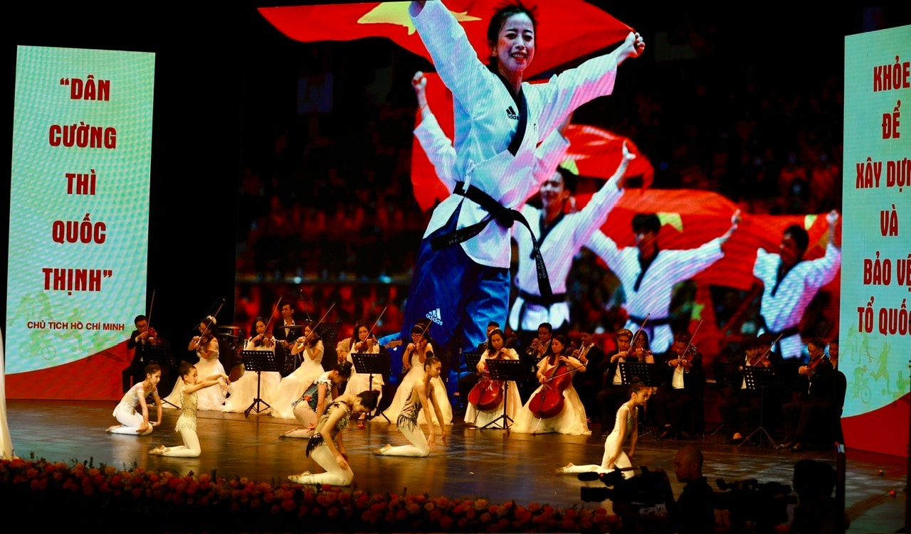 Bộ trưởng Bộ Văn hóa, Thể thao và Du lịch Nguyễn Văn Hùng phát biểu tại Lễ kỷ niệm 80 năm Ngày truyền thống ngành Thể dục Thể thao (27-3-1946 - 27-3-2026). Ảnh: Ngọc Tú