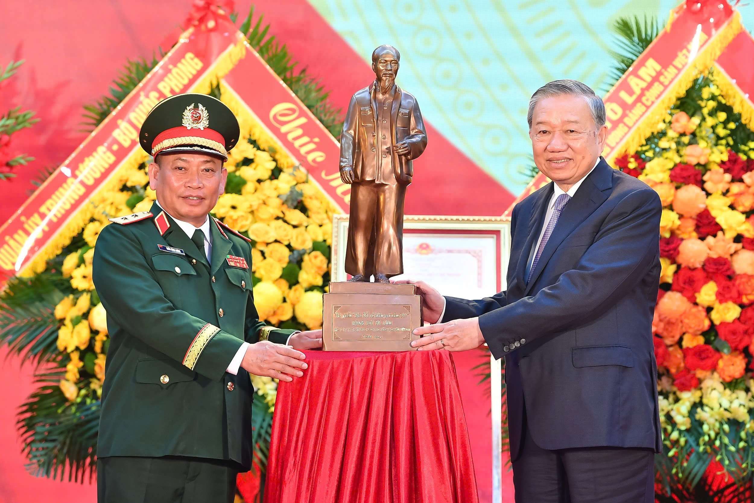 Tổng Bí thư Tô Lâm tặng bức tượng Chủ tịch Hồ Chí Minh cho Tổng cục II, Bộ Quốc phòng. Ảnh: Thống Nhất/TTXVN