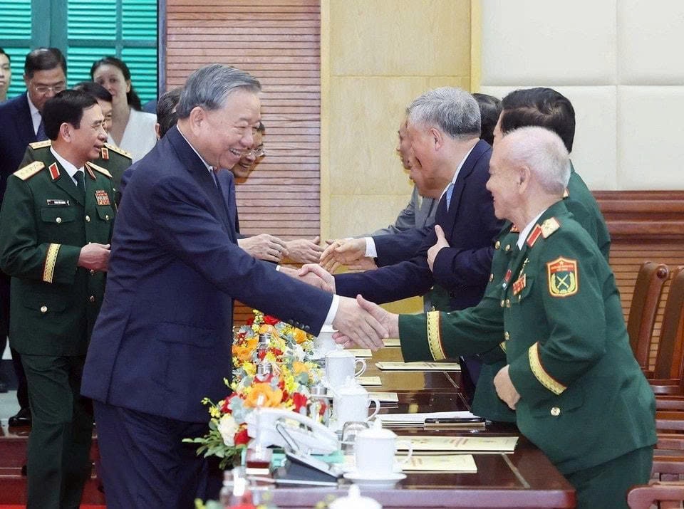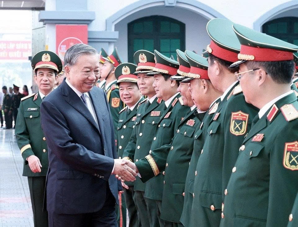 Tổng Bí thư Tô Lâm, Bí thư Quân ủy Trung ương và các đại biểu. Ảnh: Thống Nhất - TTXVN