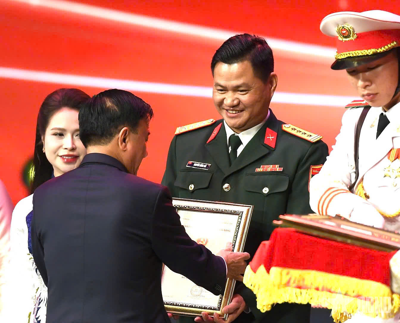 Tổng Bí thư Tô Lâm và Thủ tướng Phạm Minh Chính trao giải A tặng đại diện nhóm tác giả của Báo Quân đội nhân dân.