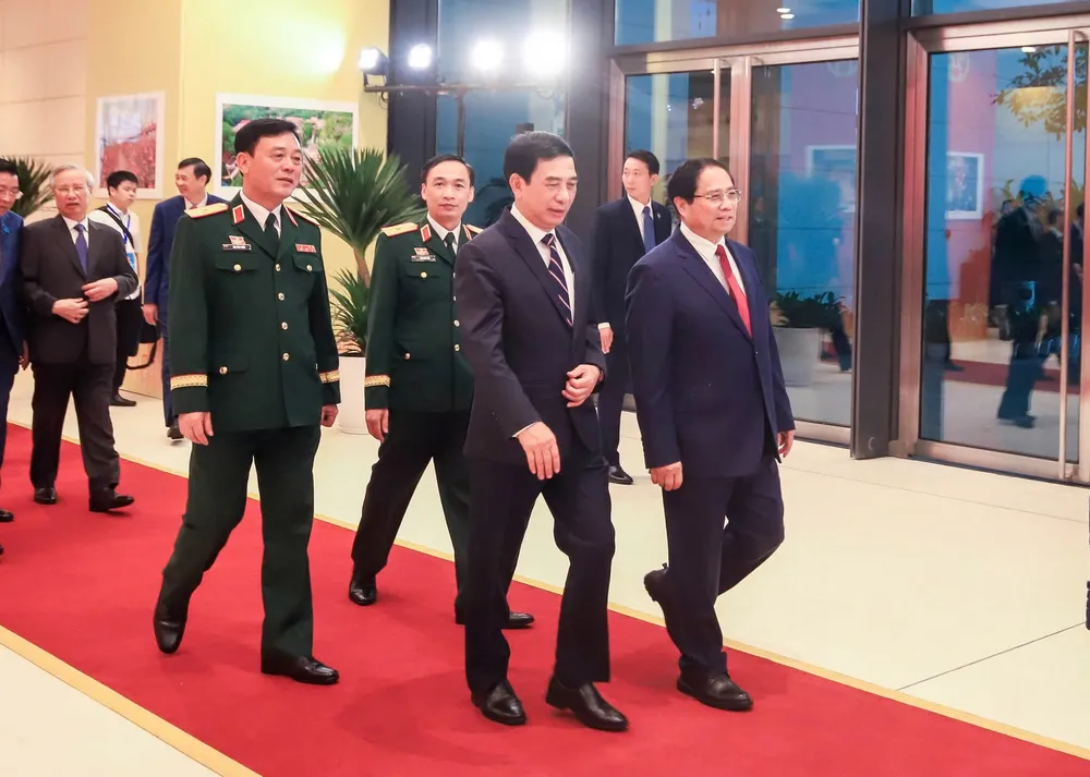 Thủ tướng Phạm Minh Chính và Bộ trưởng Quốc phòng Phan Văn Giang cùng các đại biểu tới dự phiên khai mạc Đại hội Đảng bộ TP Hà Nội vào sáng nay 16-10.