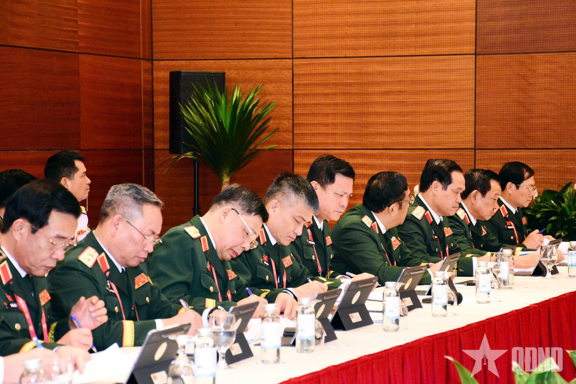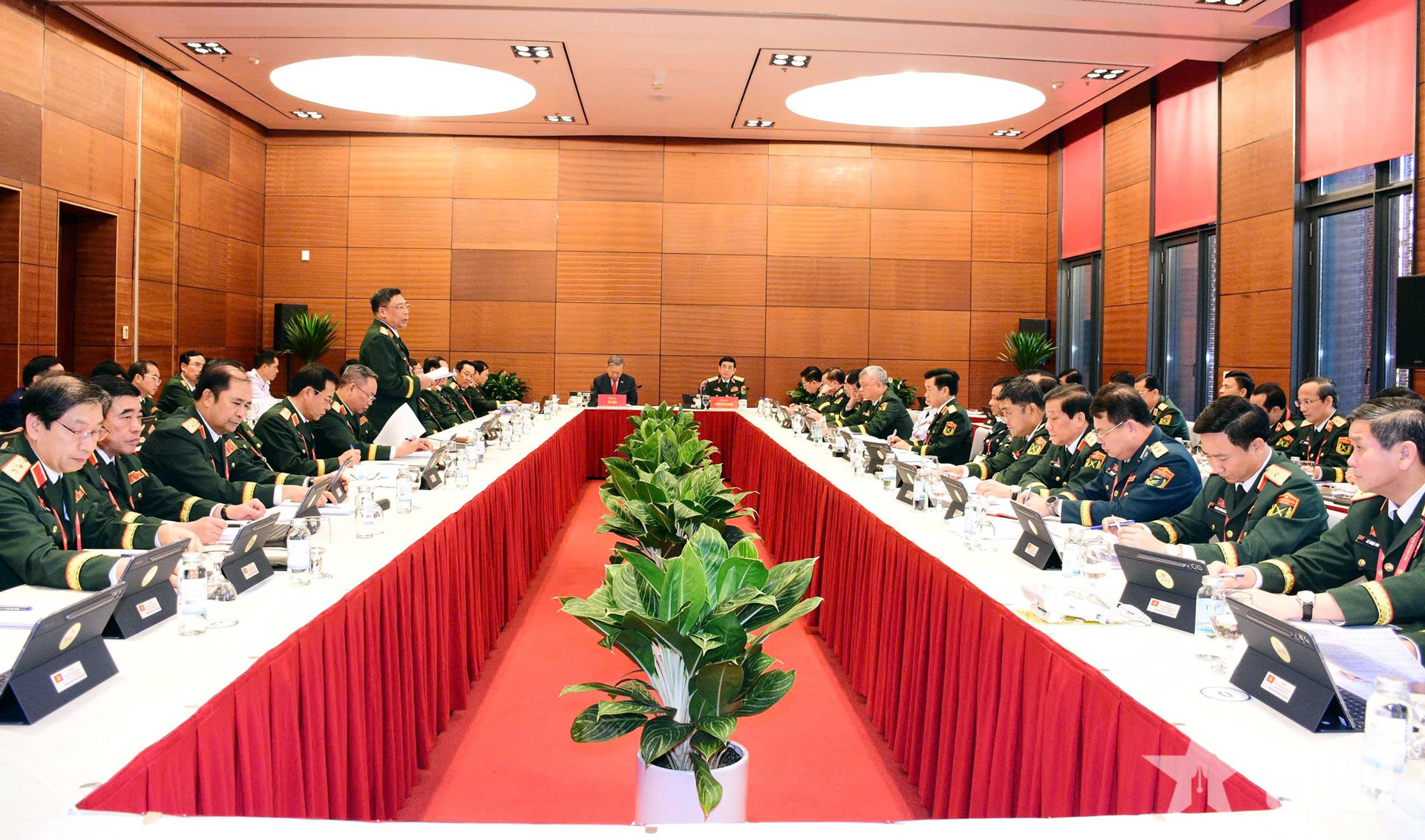 Dự phiên thảo luận có các đồng chí: Đại tướng Phan Văn Giang, Ủy viên Bộ Chính trị, Phó bí thư Quân ủy Trung ương, Bộ trưởng Bộ Quốc phòng; Đại tướng Nguyễn Trọng Nghĩa, Ủy viên Bộ Chính trị, Bí thư Trung ương Đảng, Ủy viên Thường vụ Quân ủy Trung ương, Chủ nhiệm Tổng cục Chính trị; Đại tướng Nguyễn Tân Cương, Ủy viên Trung ương Đảng, Ủy viên Thường vụ Quân ủy Trung ương, Tổng Tham mưu trưởng, Thứ trưởng Bộ Quốc phòng.