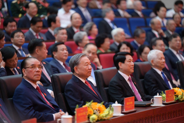 Dự đại hội có các đồng chí Ủy viên Bộ Chính trị, nguyên Ủy viên Bộ Chính trị: Nông Đức Mạnh, nguyên Tổng Bí thư; Lương Cường, Chủ tịch nước; Nguyễn Minh Triết, nguyên Chủ tịch nước; Trương Tấn Sang, nguyên Chủ tịch nước; Phạm Minh Chính, Thủ tướng Chính phủ; Nguyễn Tấn Dũng, nguyên Thủ tướng Chính phủ; Trần Thanh Mẫn, Chủ tịch Quốc hội; Nguyễn Văn An, nguyên Chủ tịch Quốc hội; Nguyễn Thị Kim Ngân, nguyên Chủ tịch Quốc hội; Trần Cẩm Tú, Thường trực Ban Bí thư; các đồng chí nguyên Thường trực Ban Bí thư Trung ương Đảng: Phan Diễn, Đại tướng Lê Hồng Anh.