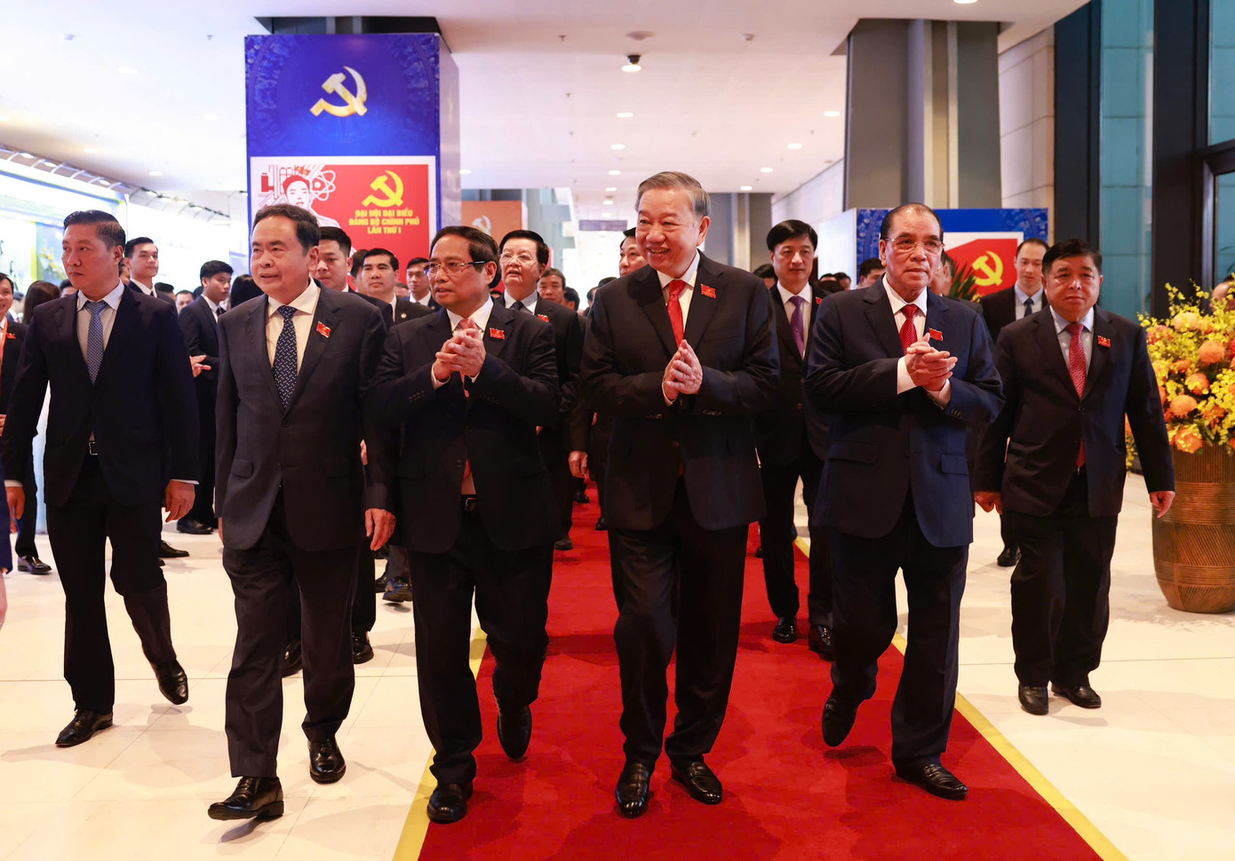 Tổng Bí thư Tô Lâm và các đồng chí lãnh đạo, nguyên lãnh đạo Đảng, Nhà nước dự Đại hội.