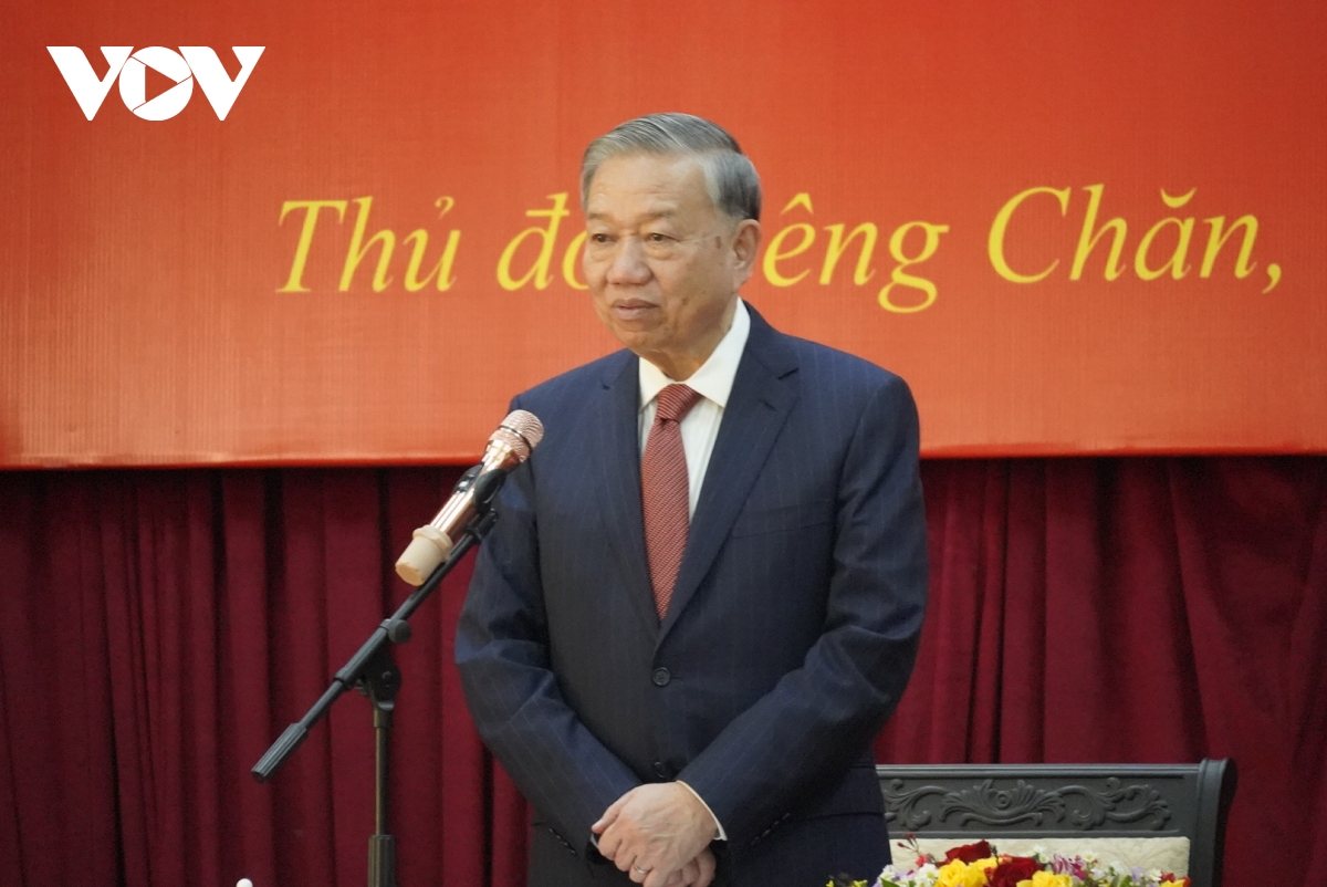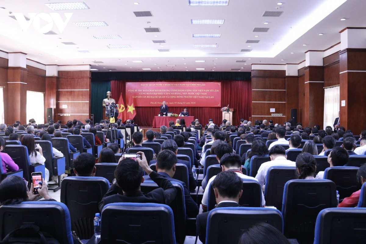 Tổng Bí thư cho biết thành công của Đại hội đại biểu toàn quốc lần thứ XIV của Đảng là thành quả của toàn dân tộc, trong đó có sự đóng góp thầm lặng nhưng hết sức to lớn của hàng triệu người Việt Nam ở nước ngoài thông qua trí tuệ, nguồn lực và tình cảm dành cho quê hương, đất nước; đặc biệt, cộng đồng người Việt Nam tại Lào là bộ phận gắn bó, tiêu biểu trong khối đại đoàn kết toàn dân tộc.