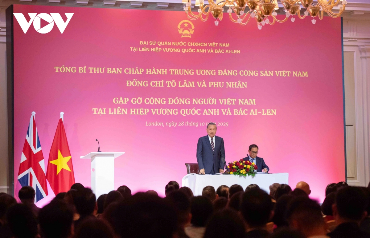 Dịp này, Tổng Bí thư cũng bày tỏ tin tưởng với truyền thống yêu nước, tinh thần tự lực, tự cường, trí tuệ và bản lĩnh Việt, cộng đồng người Việt Nam ở nước ngoài nói chung ở Vương quốc Anh nói riêng sẽ tiếp tục chung sức, đồng lòng cùng Đảng, Nhà nước và nhân dân trong nước vượt qua mọi khó khăn, thách thức, biến khát vọng thành hành động, biến tiềm năng thành sức mạnh thực tế, để cùng nhau đưa đất nước ta bước vào kỷ nguyên phát triển mới, đặc biệt cũng mong rằng đồng bào ta tại Vương quốc Anh sẽ luôn là sứ giả của văn hợp tác giữa hai dân tộc Việt - Anh.