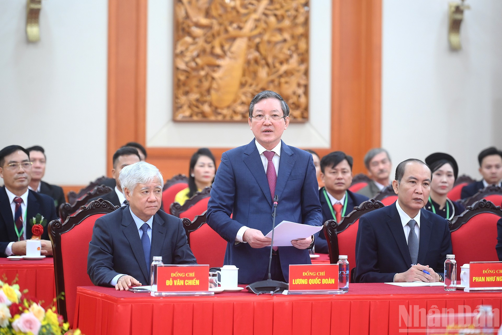 Chủ tịch Hội Nông dân Việt Nam Lương Quốc Đoàn phát biểu tại cuộc gặp mặt.