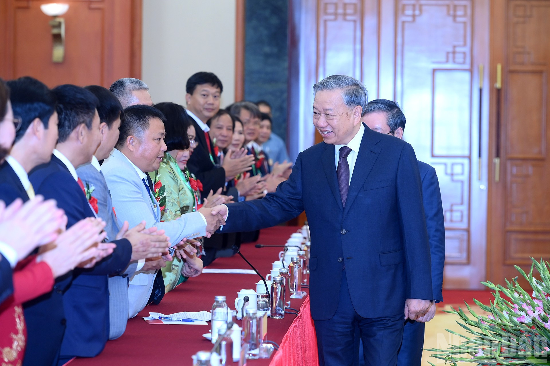 Tổng Bí thư Tô Lâm với các đại biểu tại cuộc gặp mặt.