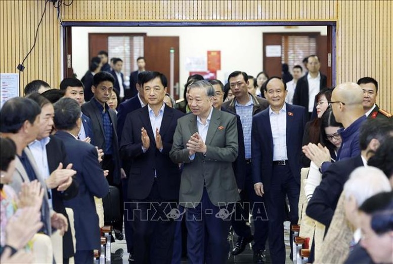 Tổng Bí thư thông tin tới cử tri một số kết quả nổi bật của nhiệm kỳ Quốc hội khóa XV, đồng thời chia sẻ những nét chính về tình hình thế giới và trong nước. Ghi nhận những nỗ lực trong công tác lãnh đạo, chỉ đạo, điều hành của hệ thống chính trị thành phố Hà Nội trong năm 2025, Tổng Bí thư cho rằng nhiều vấn đề tồn đọng đã được tập trung tháo gỡ, tạo chuyển biến tích cực trong quản lý và phát triển đô thị.
