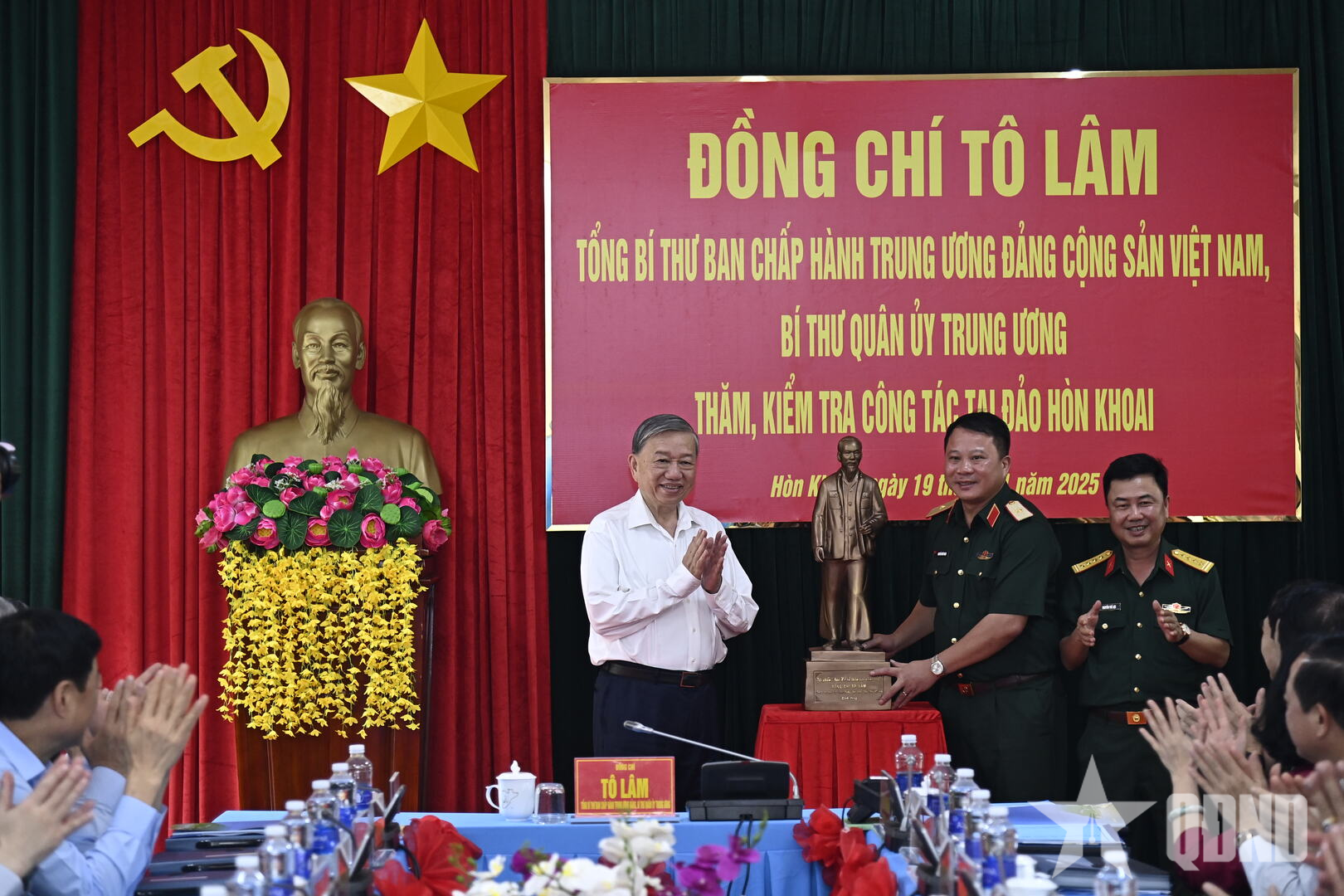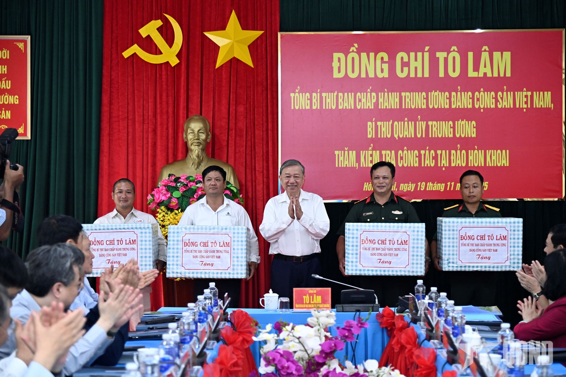 Tổng Bí thư Tô Lâm tặng quà đơn vị thi công 2 dự án trên đảo Hòn Khoai.