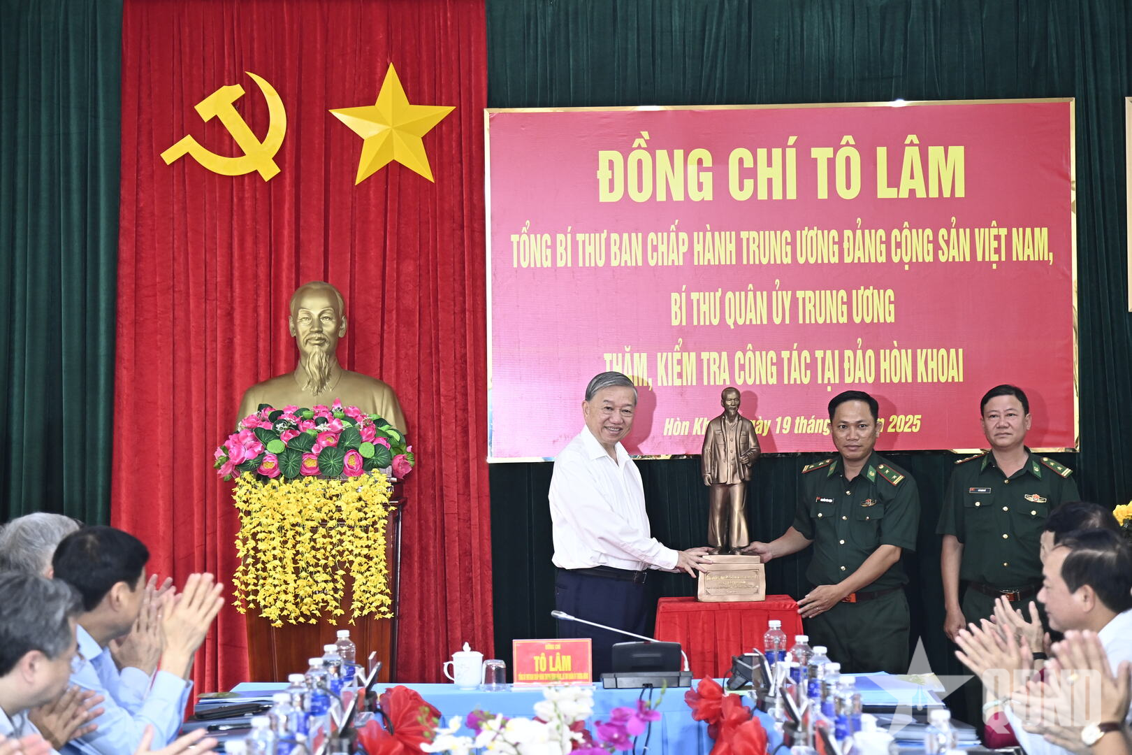 Tổng Bí thư Tô Lâm tặng tượng Bác Hồ cho Đồn Biên phòng Hòn Khoai (Bộ đội Biên phòng tỉnh Cà Mau).