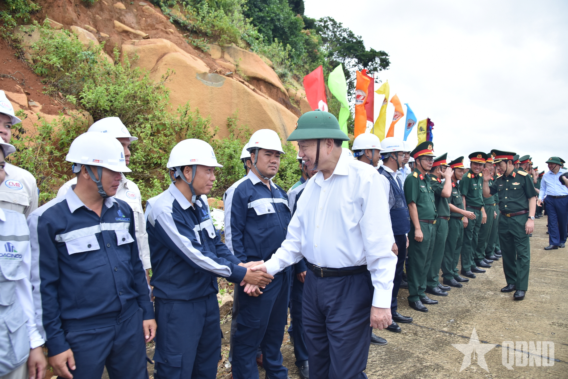 Đồng chí Tổng Bí thư đã kiểm tra tình hình triển khai 2 dự án: Tuyến đường giao thông ra đảo Hòn Khoai và Cảng tổng hợp lưỡng dụng Hòn Khoai. Các công trình do Quân chủng Hải quân và Binh đoàn 12 thực hiện, được khởi công ngày 19-8-2025.