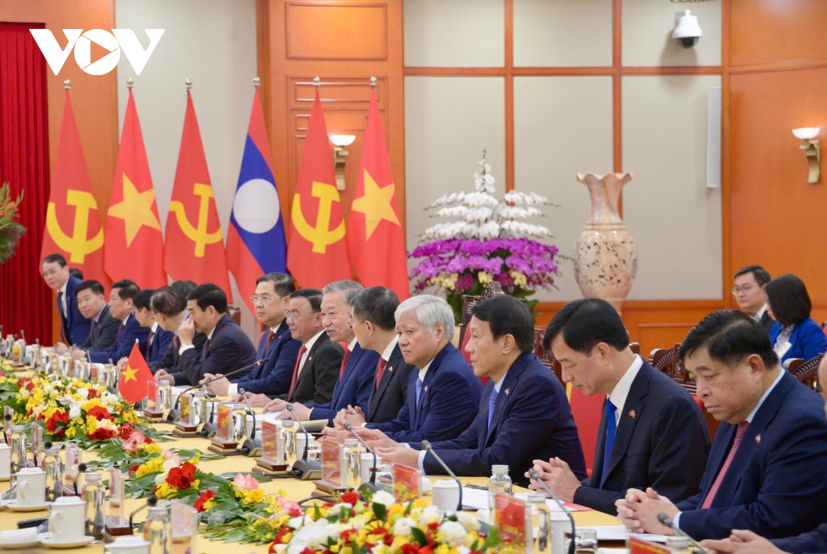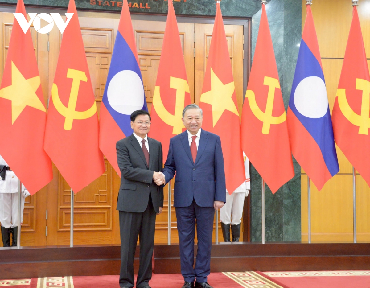 Tổng Bí thư Tô Lâm tin tưởng chuyến thăm của Tổng Bí thư, Chủ tịch nước Thongloun Sisoulith tiếp tục là minh chứng, khẳng định quyết tâm của lãnh đạo và Nhân dân hai nước trong việc gìn giữ và phát huy mối quan hệ hữu nghị vĩ đại, đoàn kết đặc biệt, hợp tác toàn diện, gắn kết chiến lược Việt Nam - Lào, trong đó tập trung triển khai mạnh mẽ, mở rộng nội hàm gắn kết chiến lược coi đây là định hướng xuyên suốt và là trụ cột nòng cốt trong quan hệ song phương giữa hai nước.