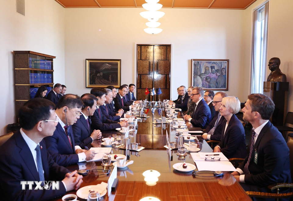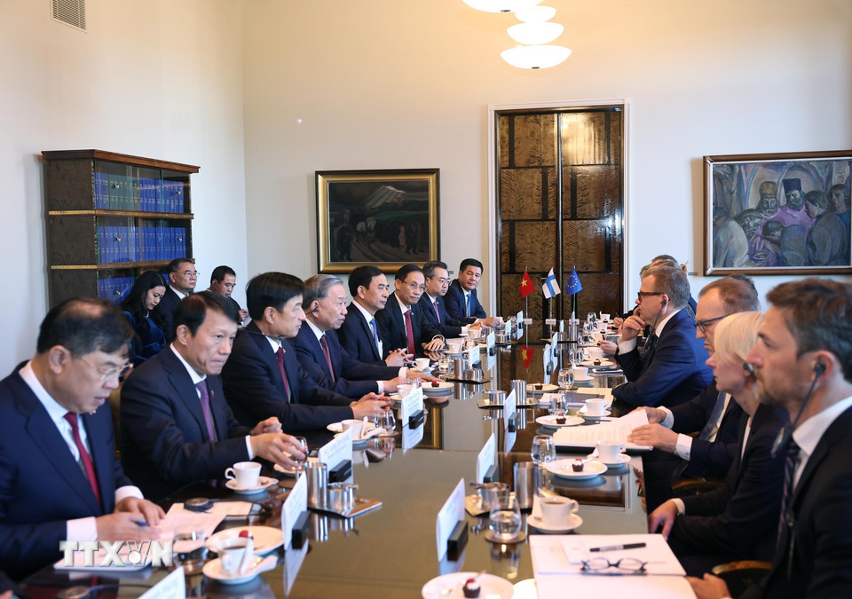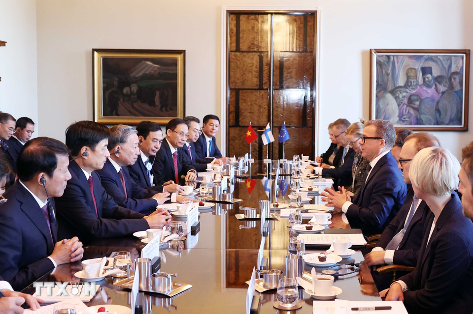 Tổng Bí thư Tô Lâm hội kiến Thủ tướng Phần Lan Petteri Orpo. (Ảnh: Thống Nhất/TTXVN)