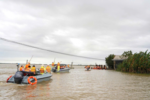 Lực lượng Công an TP Huế tiếp cận vùng ngập sâu tại xã Quảng Điền, bảo vệ tuyệt đối an ninh, an toàn cho Đoàn công tác của Tổng Bí thư Tô Lâm trong quá trình kiểm tra, thăm hỏi, động viên nhân dân vùng lũ.