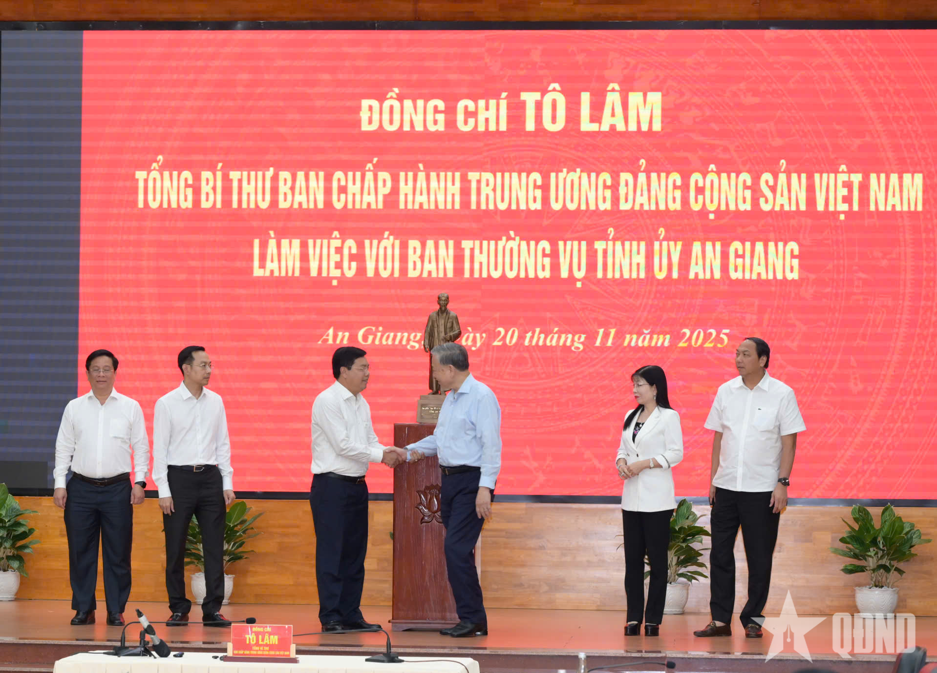 Phát biểu tại buổi làm việc, Tổng Bí thư Tô Lâm ghi nhận và biểu dương, đây là kết quả của sự nỗ lực, đoàn kết, sáng tạo của cả hệ thống chính trị và các tầng lớp nhân dân trong tỉnh; là nền tảng quan trọng để An Giang mới bứt phá mạnh mẽ hơn trong giai đoạn tới. Bên cạnh những kết quả đạt được, Tổng Bí thư chỉ rõ cần có các giải pháp mạnh mẽ, mang tính đột phá nhằm khai thác tốt hơn không gian phát triển mới và phát huy vai trò của một tỉnh đầu nguồn, biển đảo chiến lược của vùng Đồng bằng sông Cửu Long và cả nước. Giai đoạn tới mở ra nhiều cơ hội phát triển mới cho An Giang sau hợp nhất đơn vị hành chính, mở rộng không gian kinh tế biển, biên giới, đồng bằng, chuẩn bị đăng cai APEC Phú Quốc 2027…, nhưng cũng có nhiều khó khăn về hạ tầng, môi trường, an sinh, xây dựng bộ máy hai cấp, yêu cầu tăng trưởng nhanh và bền vững trong bối cảnh cạnh tranh lớn trong vùng.