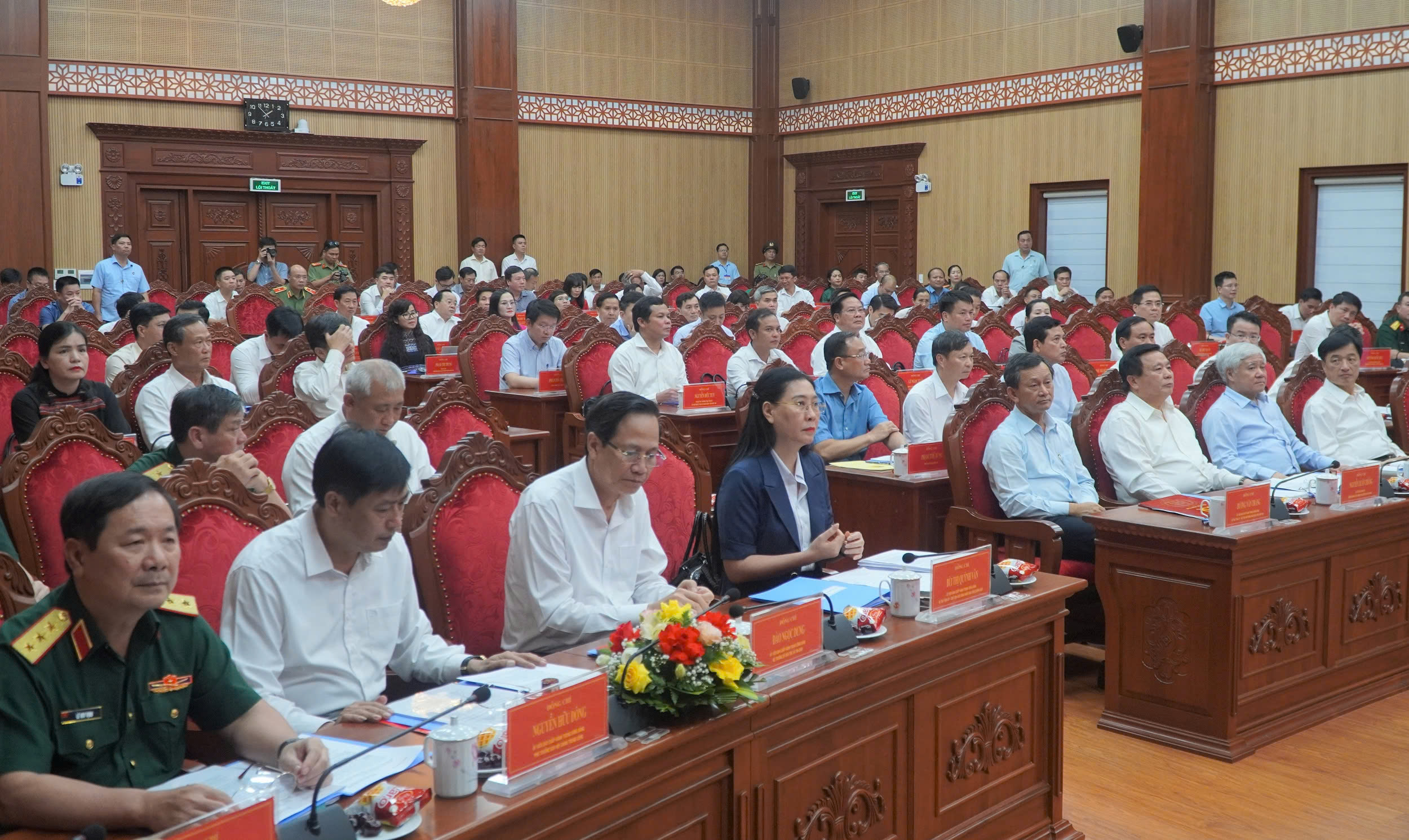 Dự buổi làm việc, về phía đoàn công tác của Trung ương có các đồng chí: Ủy viên Bộ Chính trị, Bí thư Trung ương Đảng, Trưởng ban Tổ chức Trung ương Lê Minh Hưng; Ủy viên Bộ Chính trị, Bí thư Trung ương Đảng, Chủ nhiệm Ủy ban Kiểm tra Trung ương Nguyễn Duy Ngọc; Ủy viên Bộ Chính trị, Bí thư Trung ương Đảng, Chủ tịch Ủy ban Trung ương MTTQ Việt Nam Đỗ Văn Chiến; Ủy viên Bộ Chính trị, Giám đốc Học viện Chính trị Quốc gia Hồ Chí Minh, Chủ tịch Hội đồng Lý luận Trung ương Nguyễn Xuân Thắng; Bí thư Trung ương Đảng, Chánh Văn phòng Trung ương Đảng Lê Hoài Trung; Ủy viên Trung ương Đảng, Phó Thủ tướng Chính phủ Lê Thành Long; cùng lãnh đạo một số ban, bộ, ngành trung ương.