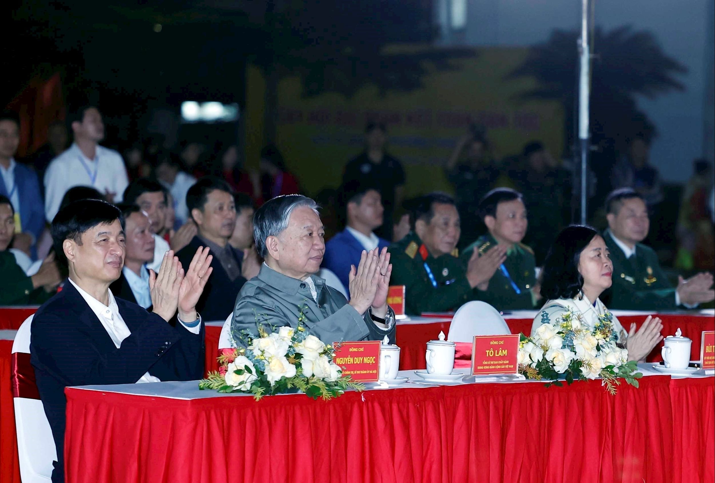 Cùng dự có các đồng chí: Bùi Thị Minh Hoài, Ủy viên Bộ Chính trị, Bí thư Trung ương Đảng, Chủ tịch Ủy ban Trung ương Mặt trận Tổ quốc Việt Nam; Nguyễn Duy Ngọc, Ủy viên Bộ Chính trị, Bí thư Thành ủy Hà Nội; Phạm Gia Túc, Ủy viên Trung ương Đảng, Chánh Văn phòng Trung ương Đảng; đại diện lãnh đạo các cơ quan, bộ, ban, ngành Trung ương và thành phố Hà Nội; cùng đông đảo nhân dân phường Thượng Cát.