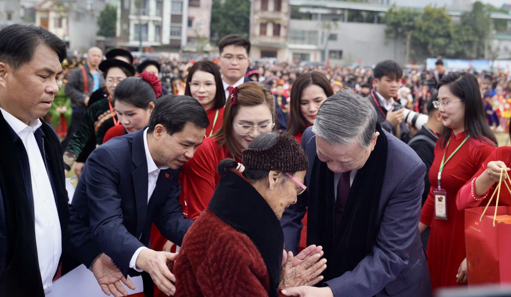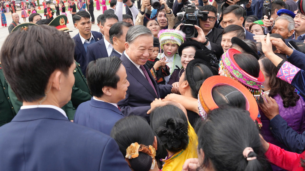 Tổng Bí thư Tô Lâm với đồng bào các dân tộc tỉnh Cao Bằng.