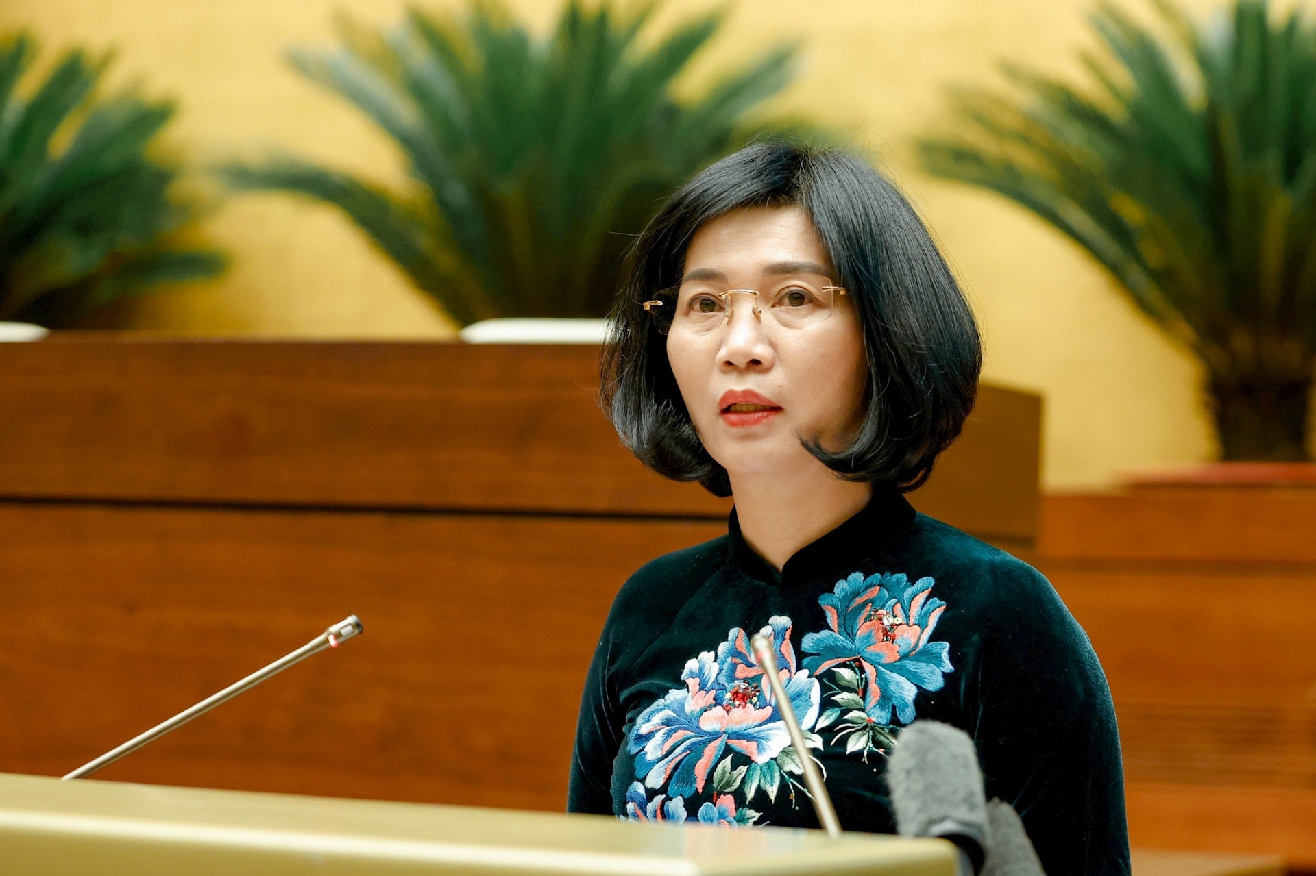 Phó Bí thư Thành ủy, Chủ tịch HĐND thành phố, Chủ tịch Ủy ban Bầu cử thành phố Hà Nội Phùng Thị Hồng Hà tham luận. Ảnh: Quochoi.vn