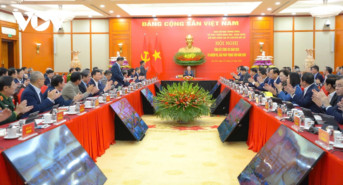 Sáng nay 25/12 tại Trụ sở Trung ương Đảng, Tổng Bí thư Tô Lâm, Trưởng Ban Chỉ đạo chủ trì hội nghị tổng kết công tác năm 2025 và triển khai nhiệm vụ giải pháp trọng tâm năm 2026 của Ban Chỉ đạo Trung ương về phát triển khoa học công nghệ, đổi mới sáng tạo và chuyển đổi số. Cùng dự hội nghị có Thủ tướng Chính phủ Phạm Minh Chính và Thường trực Ban Bí thư Trần Cẩm Tú.