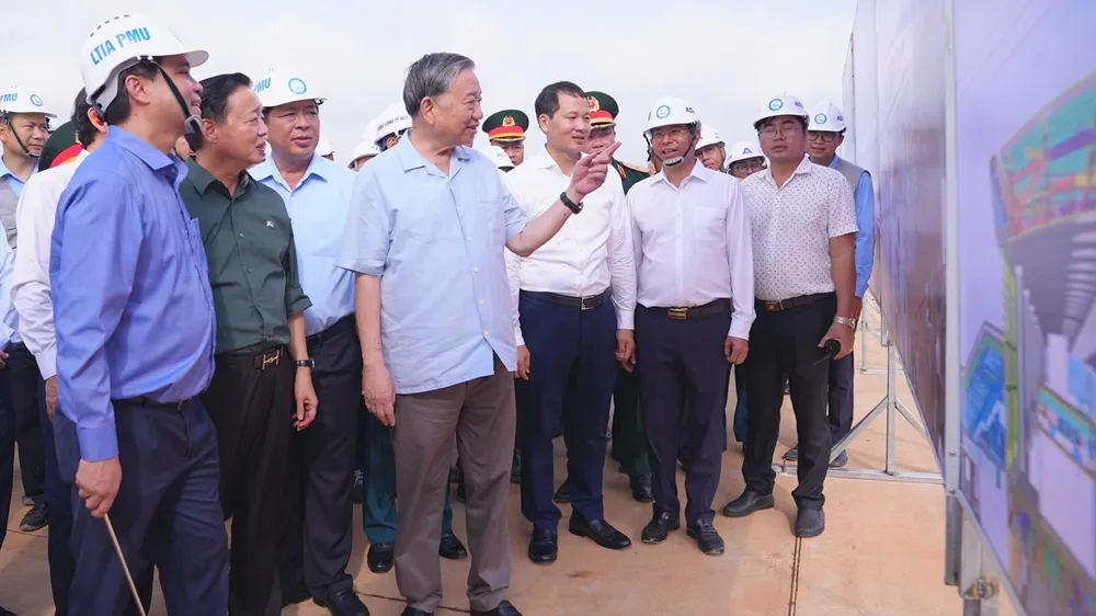 Tổng Bí thư Tô Lâm cùng đoàn công tác Trung ương đến thăm, nắm tình hình xây dựng Sân bay Long Thành. Ảnh: AX