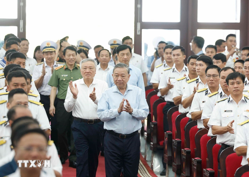 Tổng Bí thư Tô Lâm đến thăm, làm việc với Vùng 5 Hải quân. (Ảnh: Thống Nhất/TTXVN)