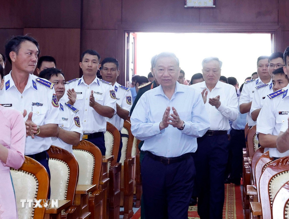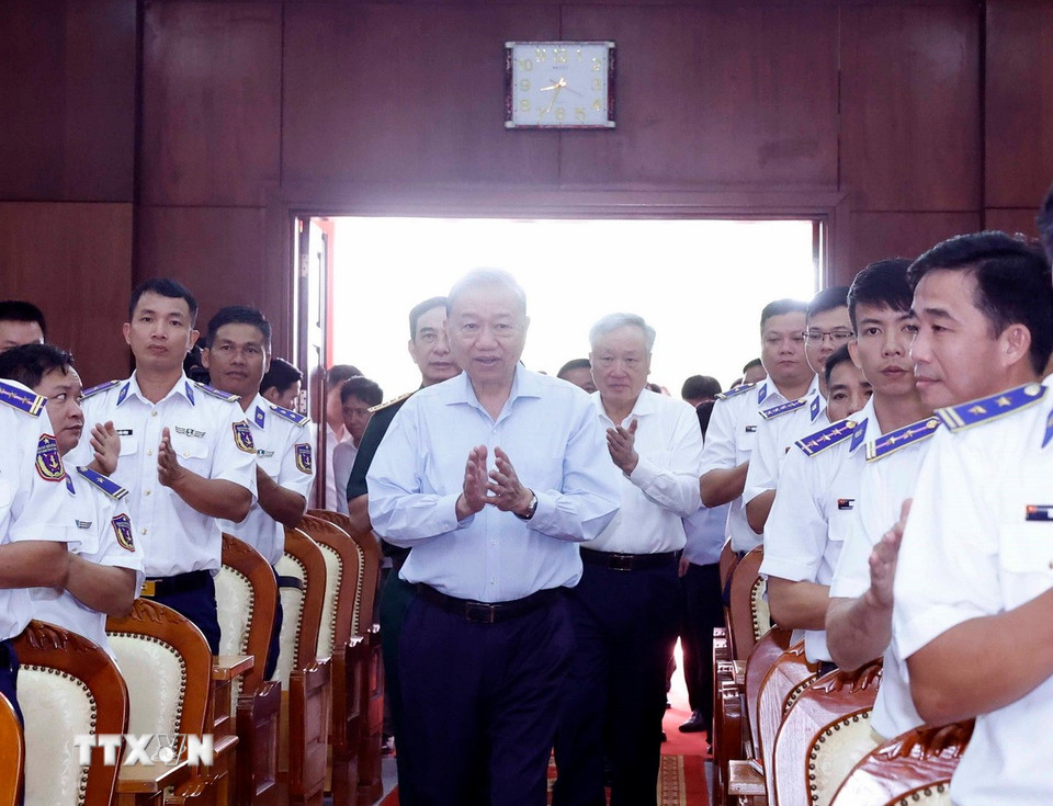 Tổng Bí thư Tô Lâm thăm, làm việc tại Bộ Tư lệnh Vùng Cảnh sát Biển 4. (Ảnh: Thống Nhất/TTXVN)