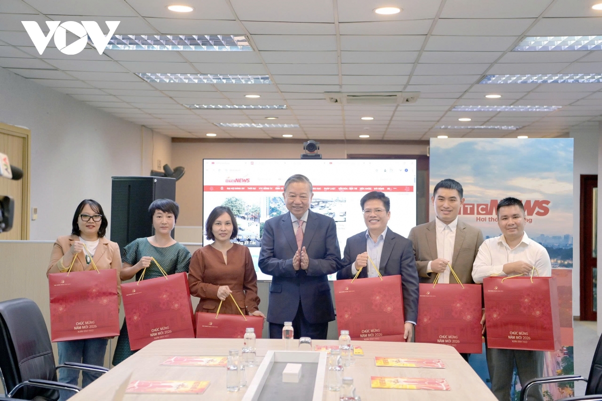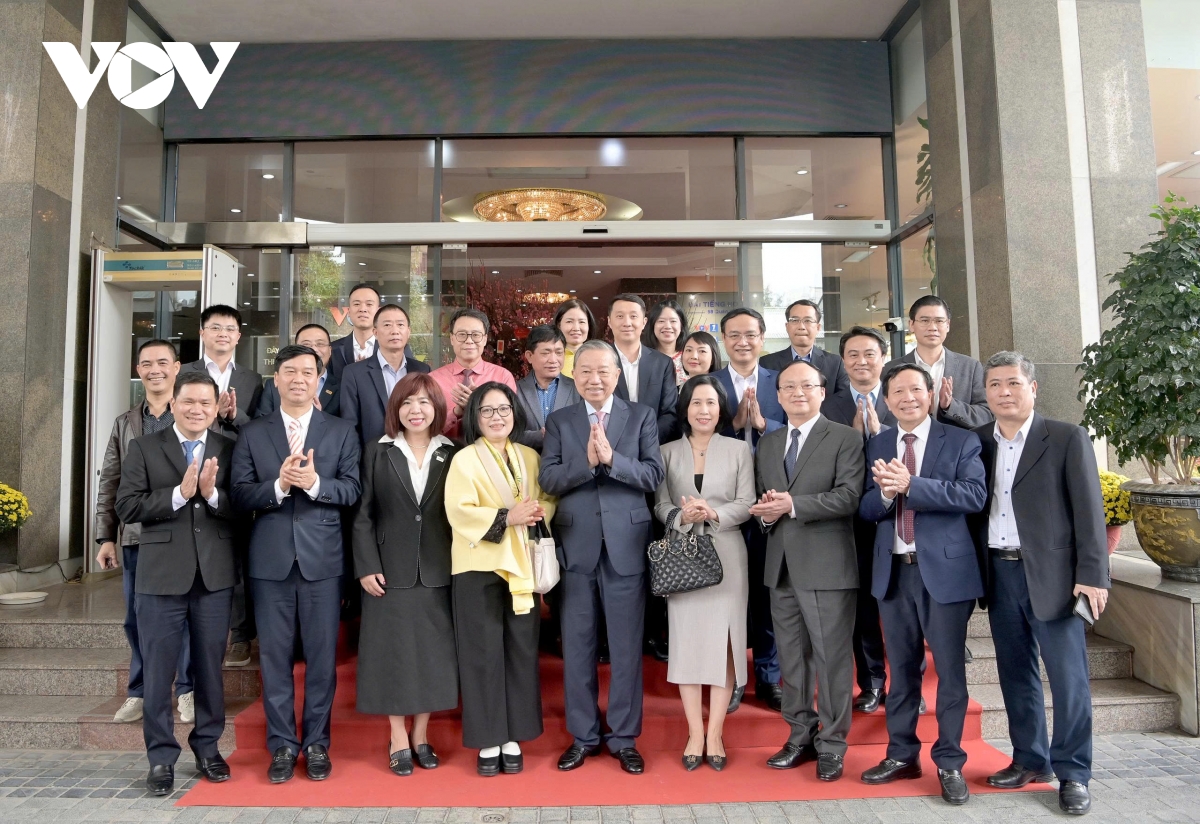 Tổng Bí thư Tô Lâm nhấn mạnh: ''Hôm nay, tôi đến thăm các đồng chí, chủ yếu là chia sẻ những khó khăn. Giờ đây, mọi người, mọi nhà đang háo hức đón Tết, nhưng chúng ta ở đây vẫn phải biên tập bản tin, vẫn phải làm các chương trình phát thanh, vẫn phải chuẩn bị kỹ thuật, vẫn phải lên sóng, không những ngày hôm nay, ngày mai, ngày kia, thậm chí đêm giao thừa, sáng mùng 1 vẫn phải làm. Thay mặt các đồng chí lãnh đạo Đảng, Nhà nước, tôi biểu dương Đài TNVN với những nỗ lực không mệt mỏi, cảm ơn và tri ân những đóng góp, những kết quả công tác đồng chí trong năm vừa qua, đặc biệt trong những ngày Tết đến, xuân về”.