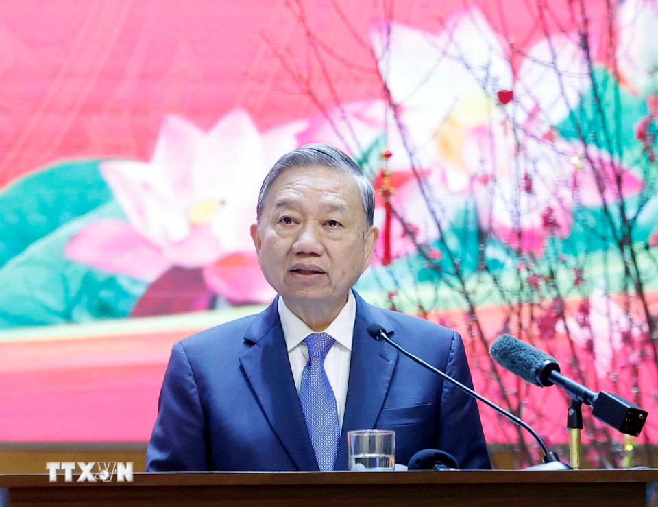 Tổng Bí thư Tô Lâm đến thăm, chúc Tết Cục An ninh điều tra (Bộ Công an). (Ảnh: Thống Nhất/TTXVN)