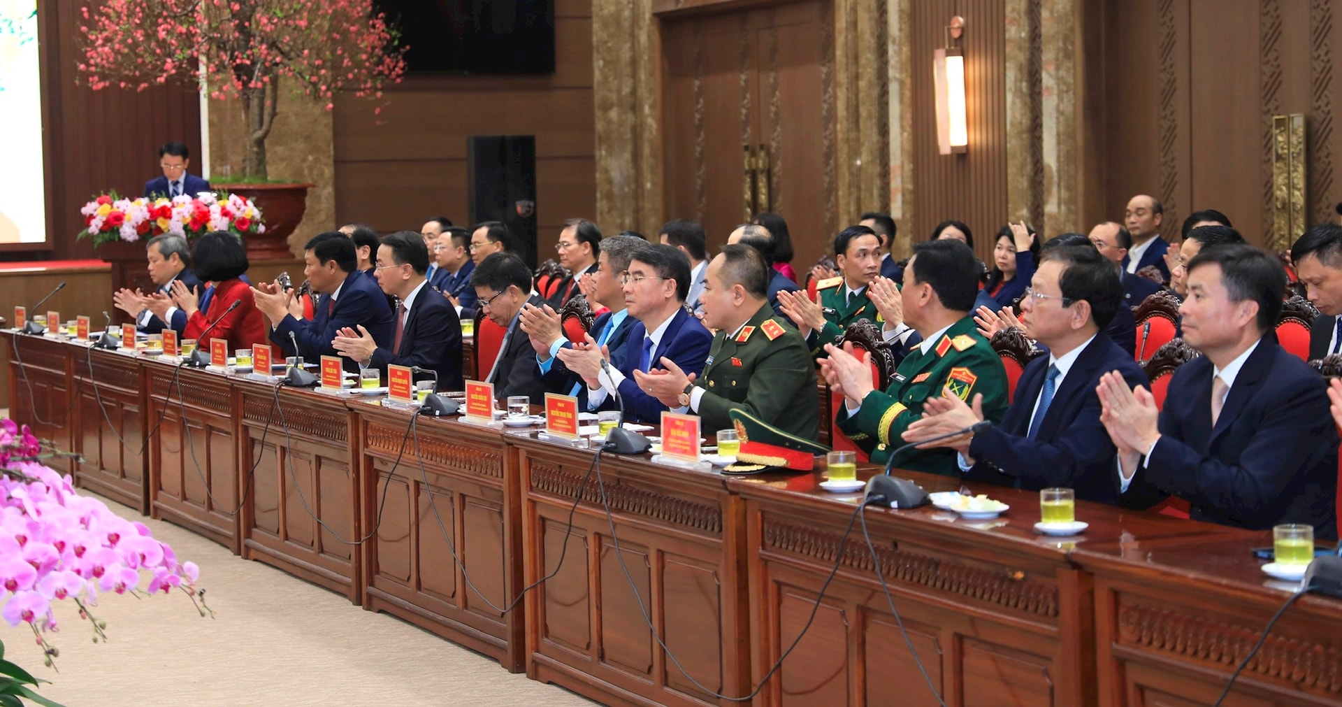 Thay mặt lãnh đạo Đảng, Nhà nước, Tổng Bí thư Tô Lâm gửi tới toàn thể cán bộ, chiến sĩ, đồng bào Thủ đô lời thăm hỏi chân tình và những lời chúc mừng năm mới tốt đẹp nhất.