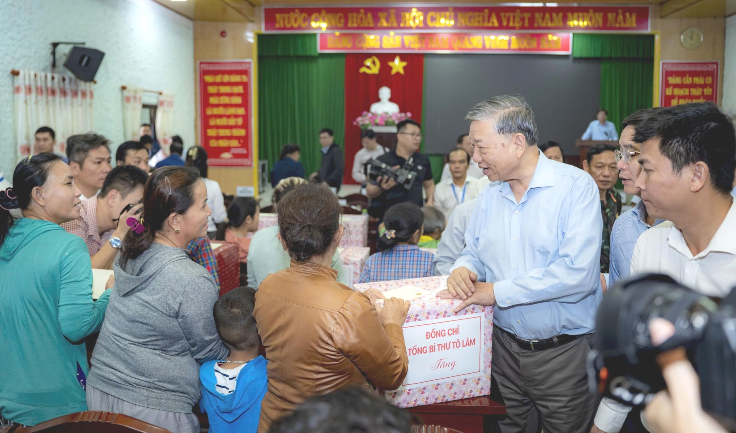 Tại các nơi đến thăm, Tổng Bí thư Tô Lâm đã ghi nhận tinh thần chủ động, đoàn kết và ý thức phòng chống thiên tai của chính quyền và người dân địa phương. Đồng thời, ân cần thăm hỏi tình hình đời sống, chia sẻ khó khăn và tặng quà động viên bà con cố gắng khắc phục thiệt hại, sớm ổn định cuộc sống sau lũ.