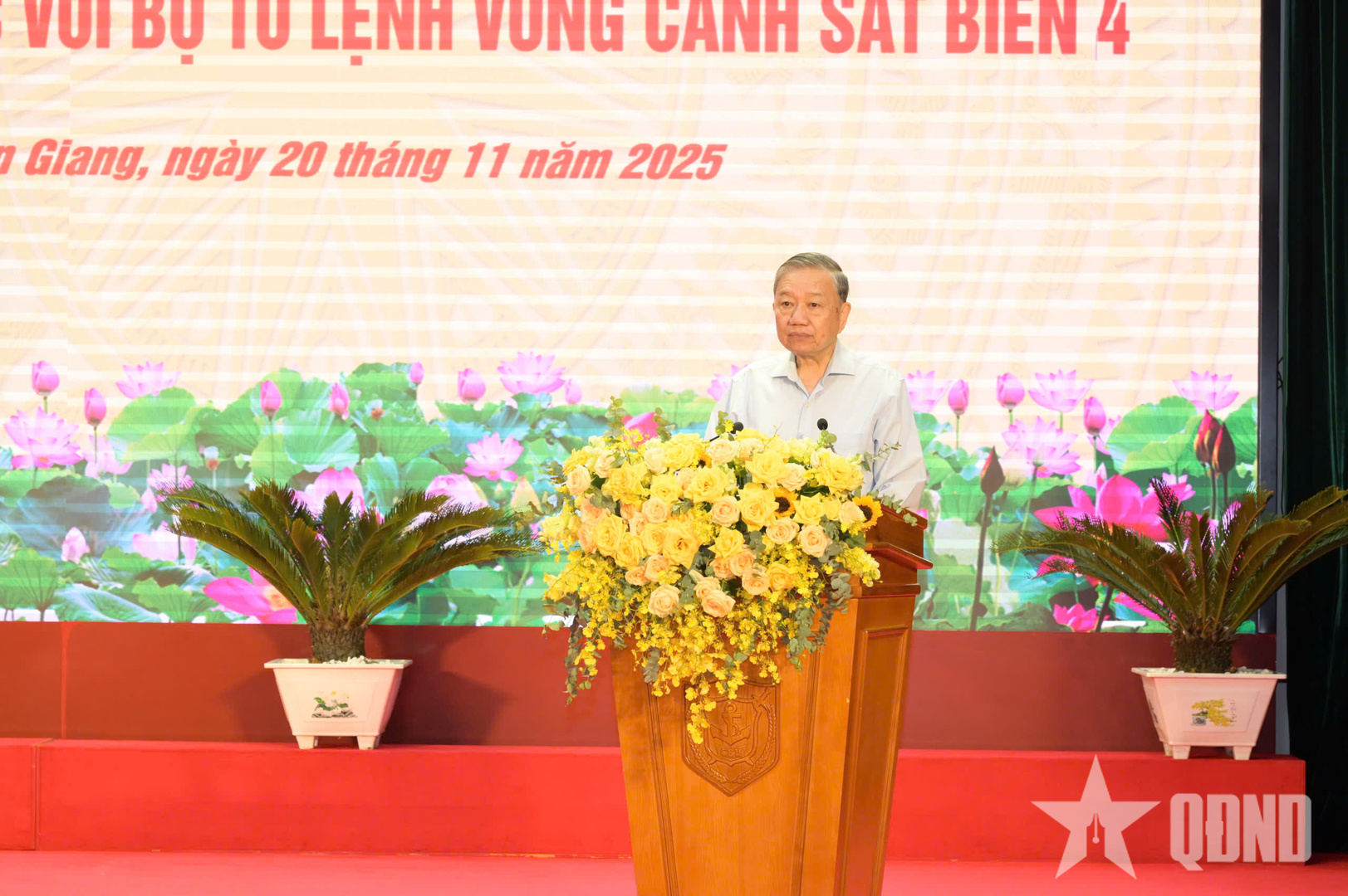 Tổng Bí thư Tô Lâm phát biểu tại buổi thăm, làm việc với Bộ tư lệnh Vùng Cảnh sát biển 4.