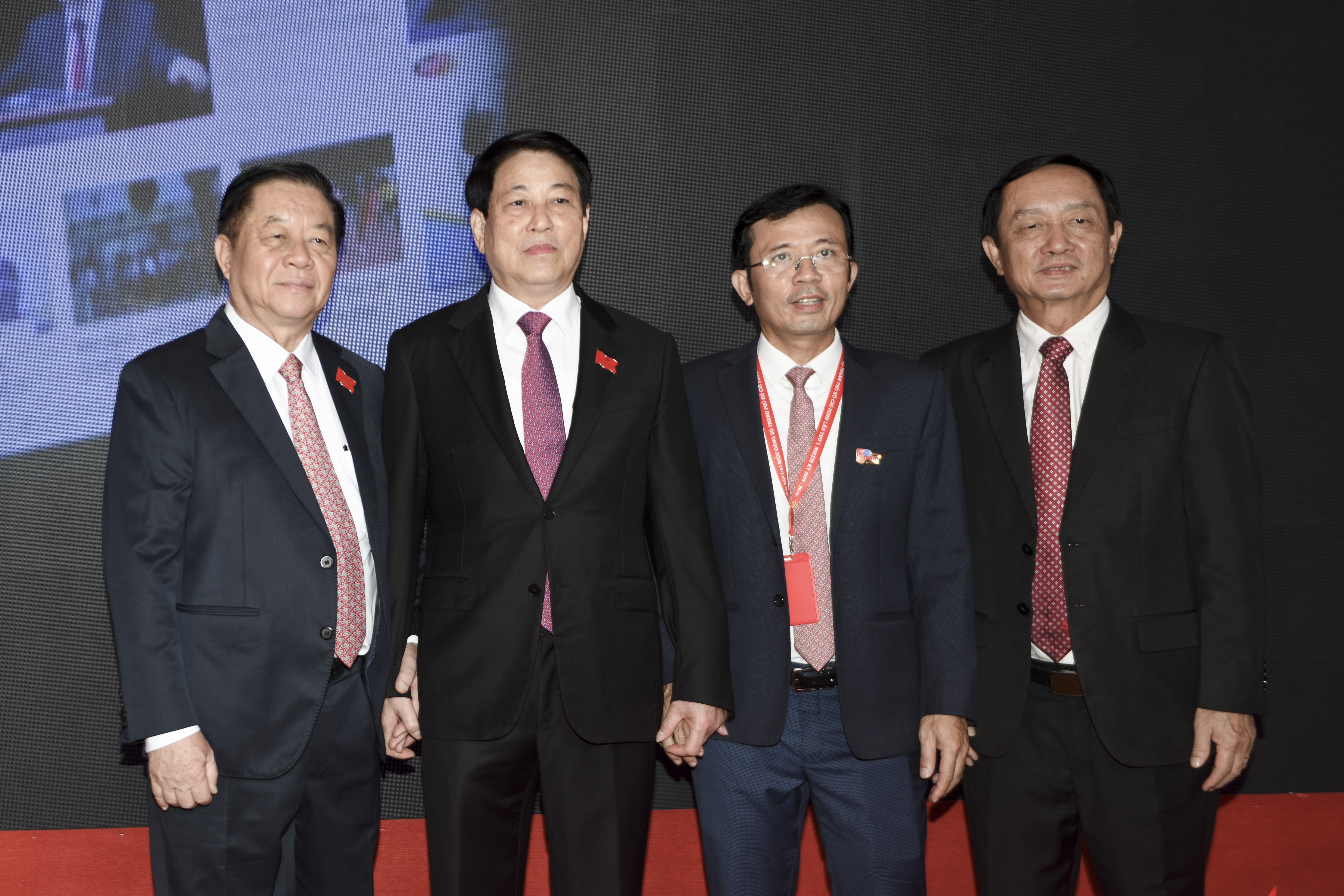 Chủ tịch nước Lương Cường, Trưởng ban Tuyên giáo và Dân vận Trung ương Nguyễn Trọng Nghĩa trao đổi và chụp hình lưu niệm cùng các lãnh đạo nhà xuất bản, các tờ báo.