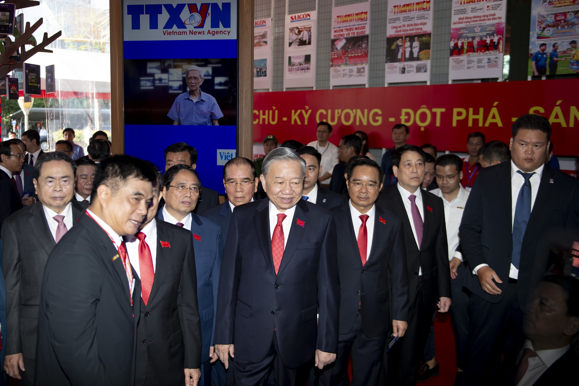 Trước giờ khai mạc, Tổng Bí thư Tô Lâm dành thời gian tham quan triển lãm Báo chí - Xuất bản TP.HCM.