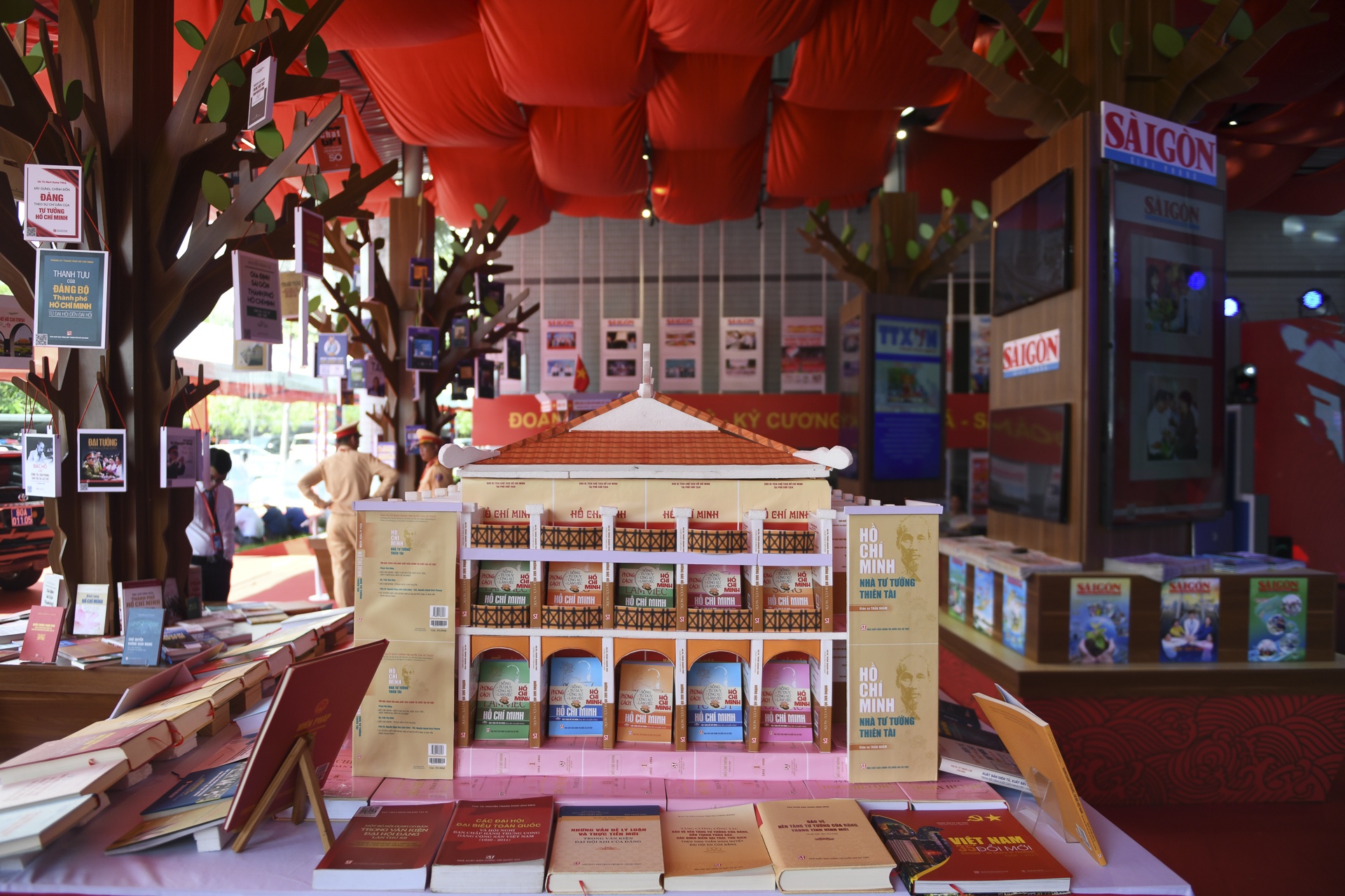 Điểm nhấn của triển lãm là khu trưng bày xếp sách nghệ thuật mô phỏng Bến Nhà Rồng, Nhà giàn DK1 và Trung tâm Hành chính Bình Dương. Các mô hình này biểu trưng cho tinh thần sáng tạo, bền bỉ và khát vọng vươn lên của TP.HCM trong thời kỳ hội nhập.