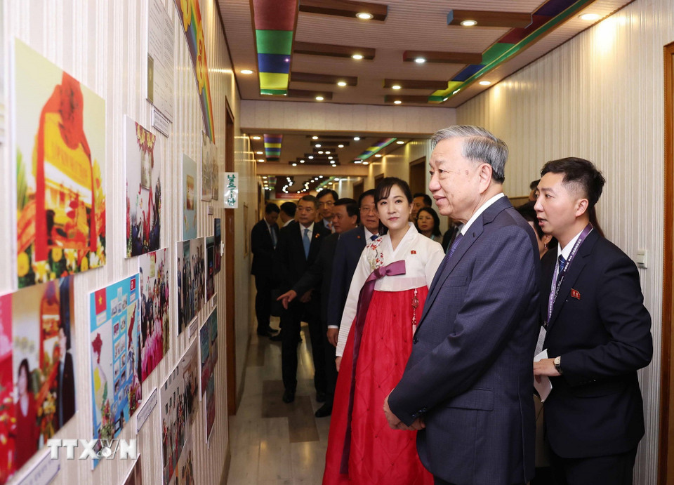Tổng Bí thư Tô Lâm thăm lớp học mang tên Chủ tịch Hồ Chí Minh. (Ảnh: Thống Nhất/TTXVN)