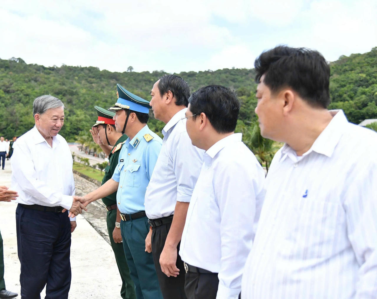 Tổng Bí thư Tô Lâm cùng đoàn công tác Trung ương thăm, làm việc với các đơn vị Quân đội và Đảng bộ, chính quyền địa phương tại Đặc khu Thổ Châu (tỉnh An Giang).