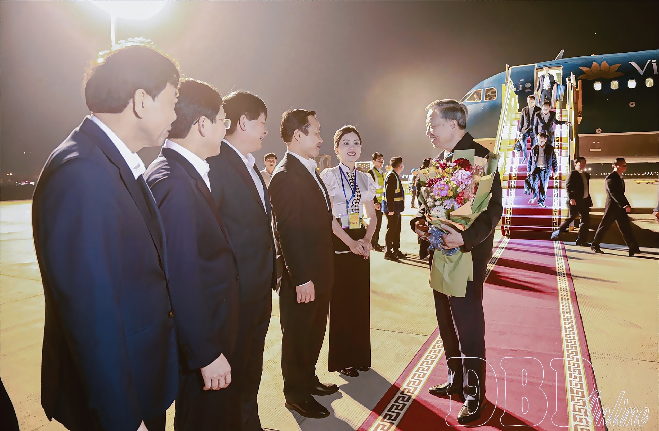 Các đồng chí lãnh đạo tỉnh đón Tổng Bí thư Tô Lâm tại Cảng hàng không Điện Biên.