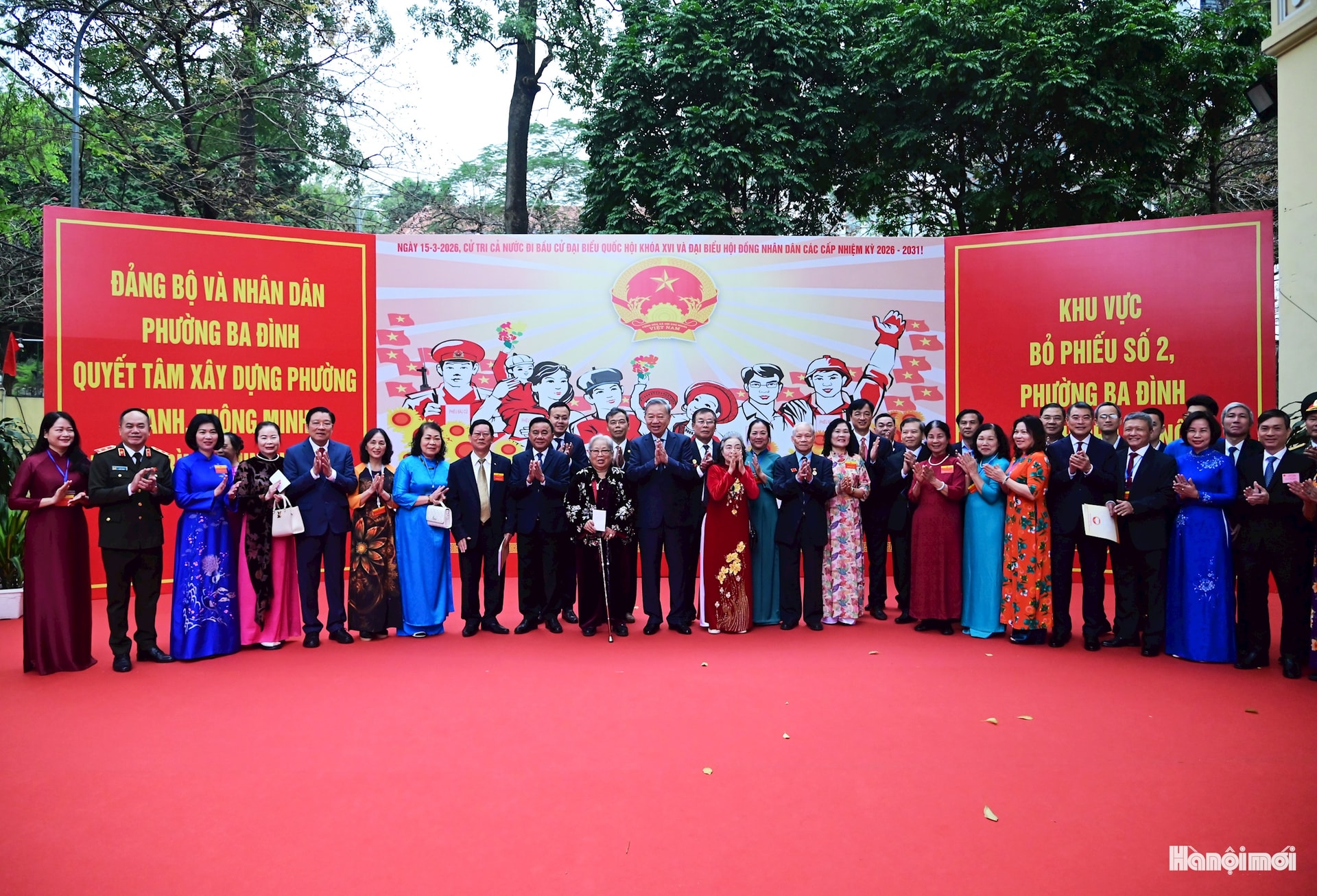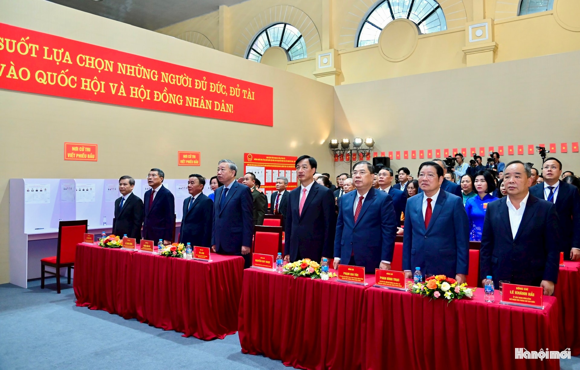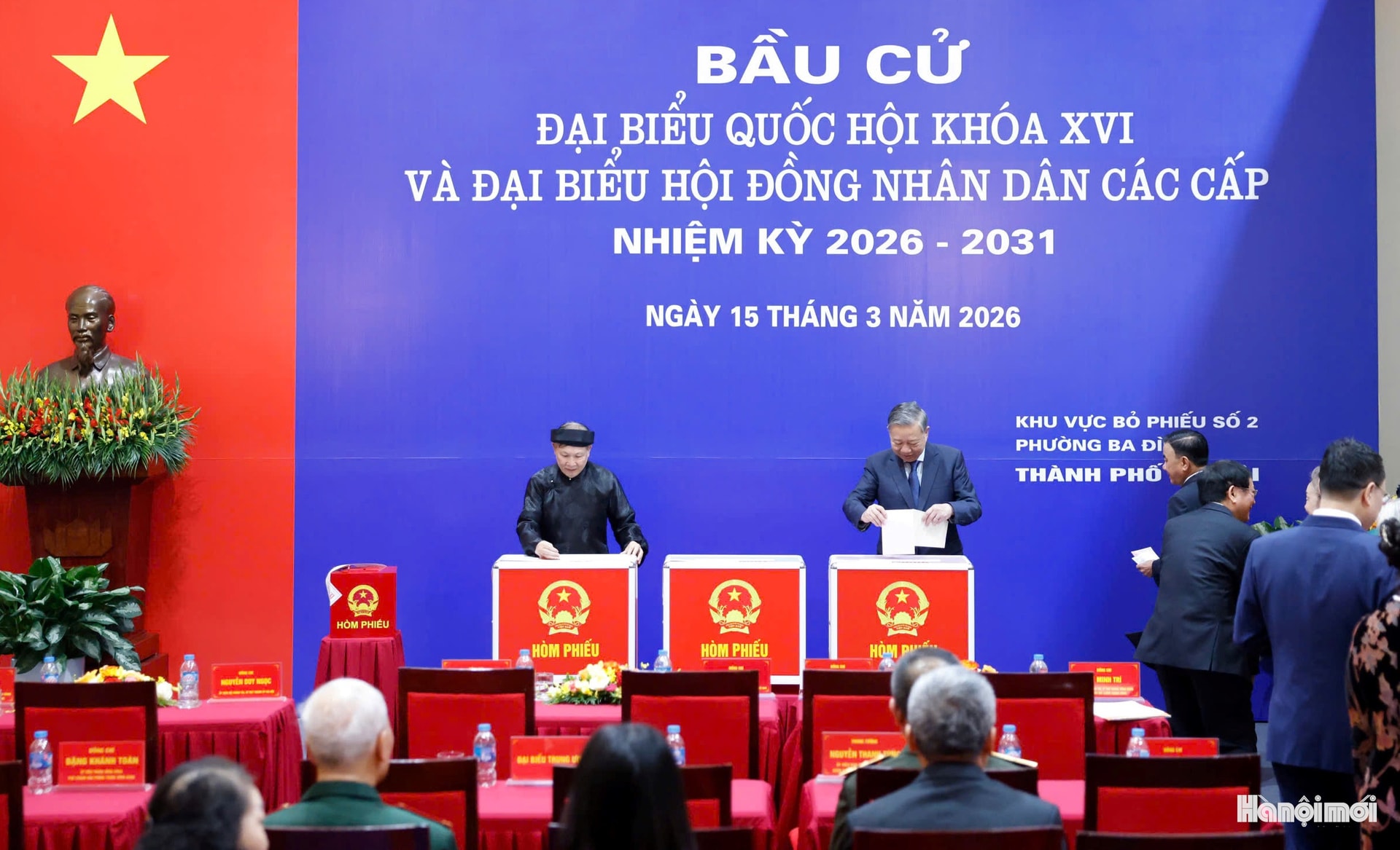 Tổng Bí thư Tô Lâm cùng các đồng chí lãnh đạo Đảng, Nhà nước đến Khu vực bỏ phiếu số 2 thuộc Tổ bầu cử số 2 phường Ba Đình, Thủ đô Hà Nội.