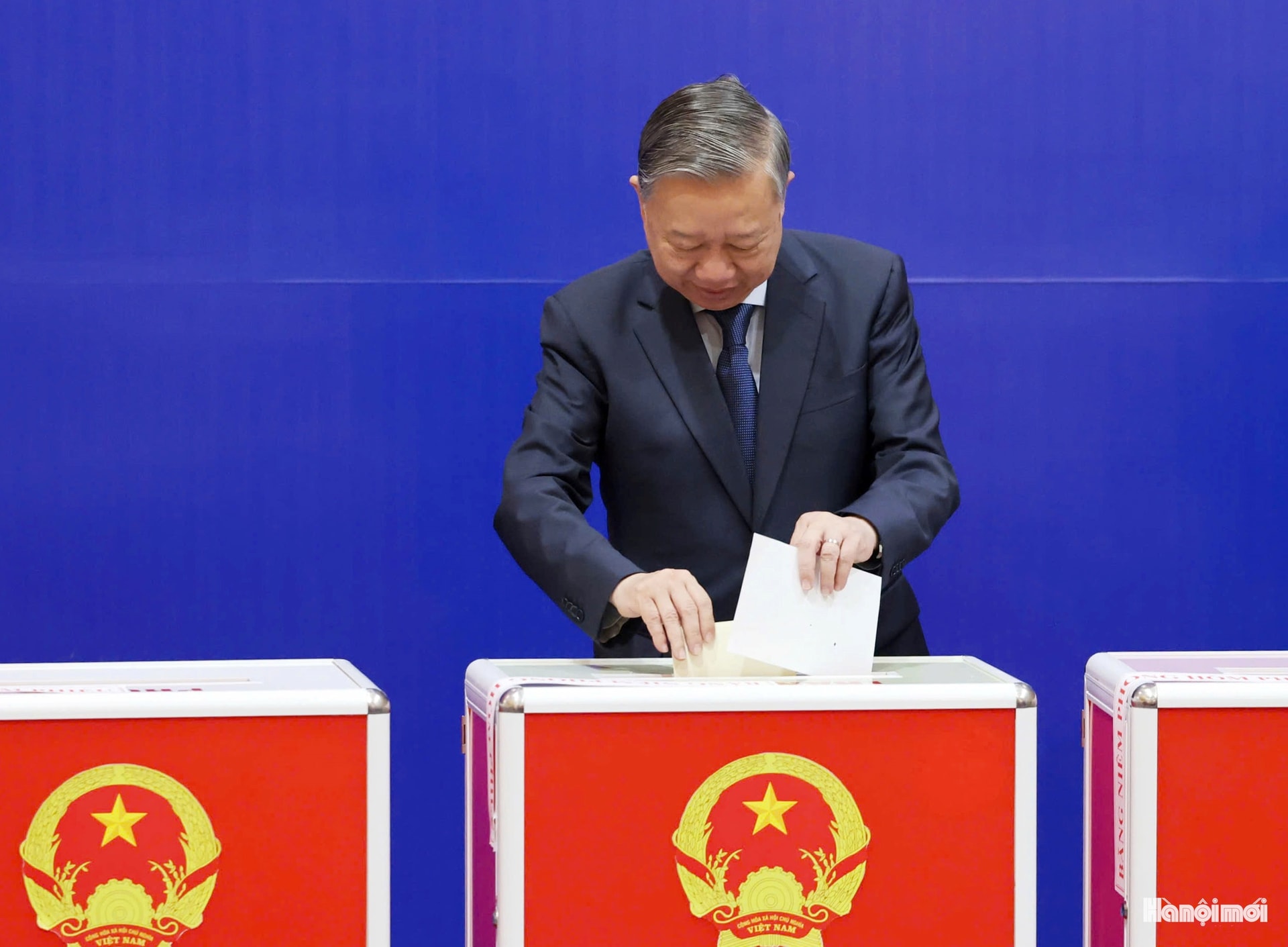 Tổng Bí thư Tô Lâm bỏ phiếu bầu cử.