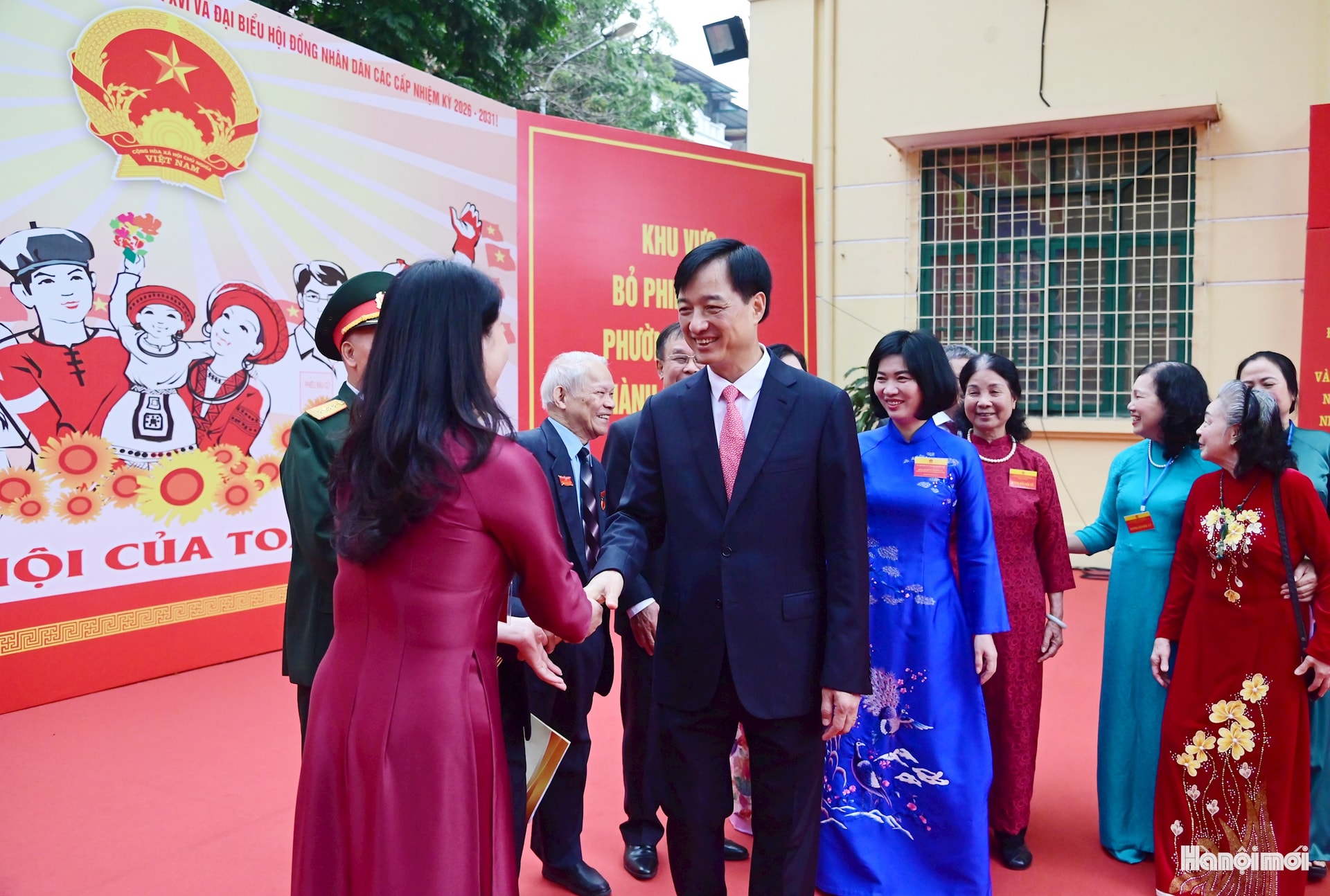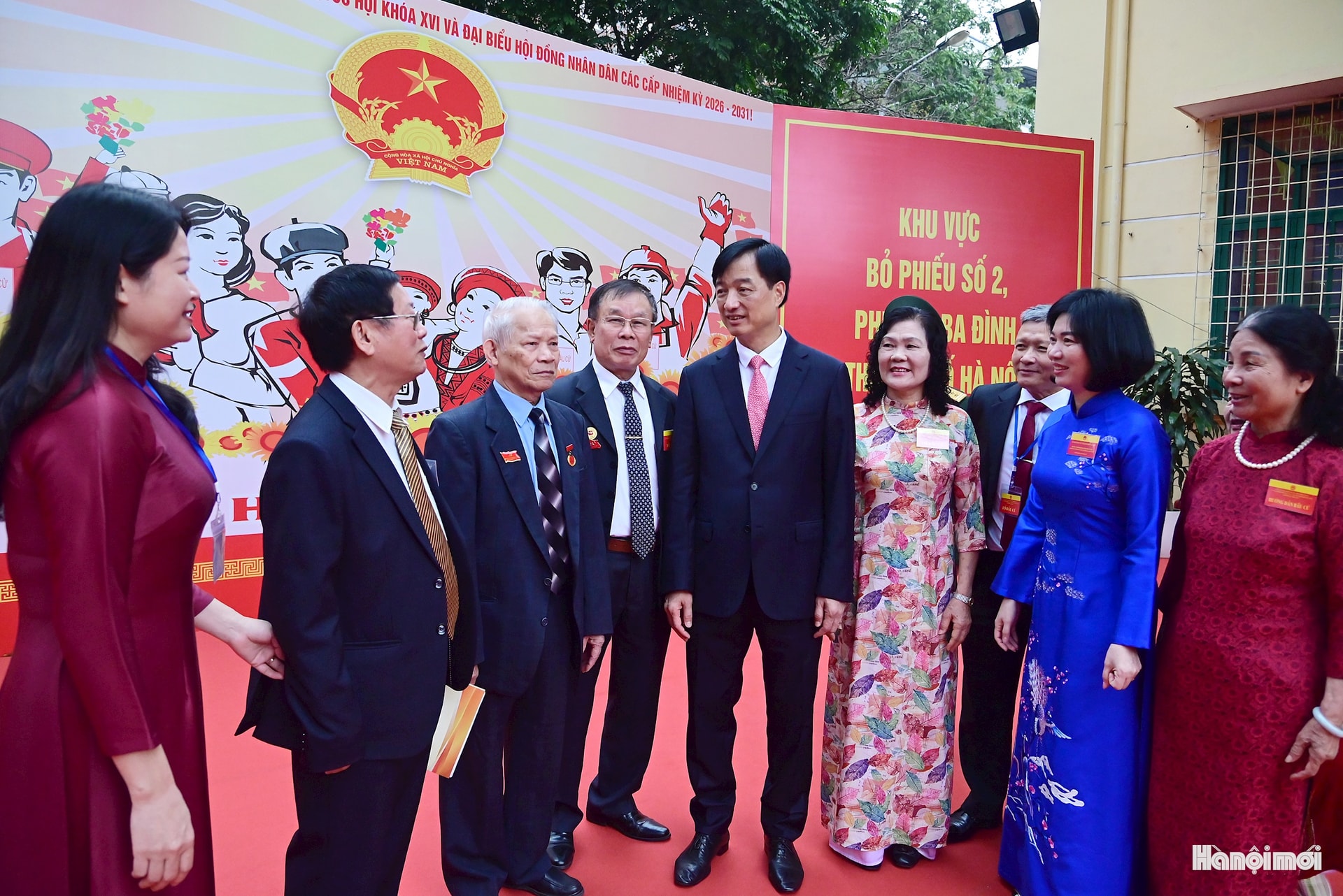 Bí thư Thành ủy Hà Nội Nguyễn Duy Ngọc, lãnh đạo thành phố Hà Nội với các cử tri phường Ba Đình.