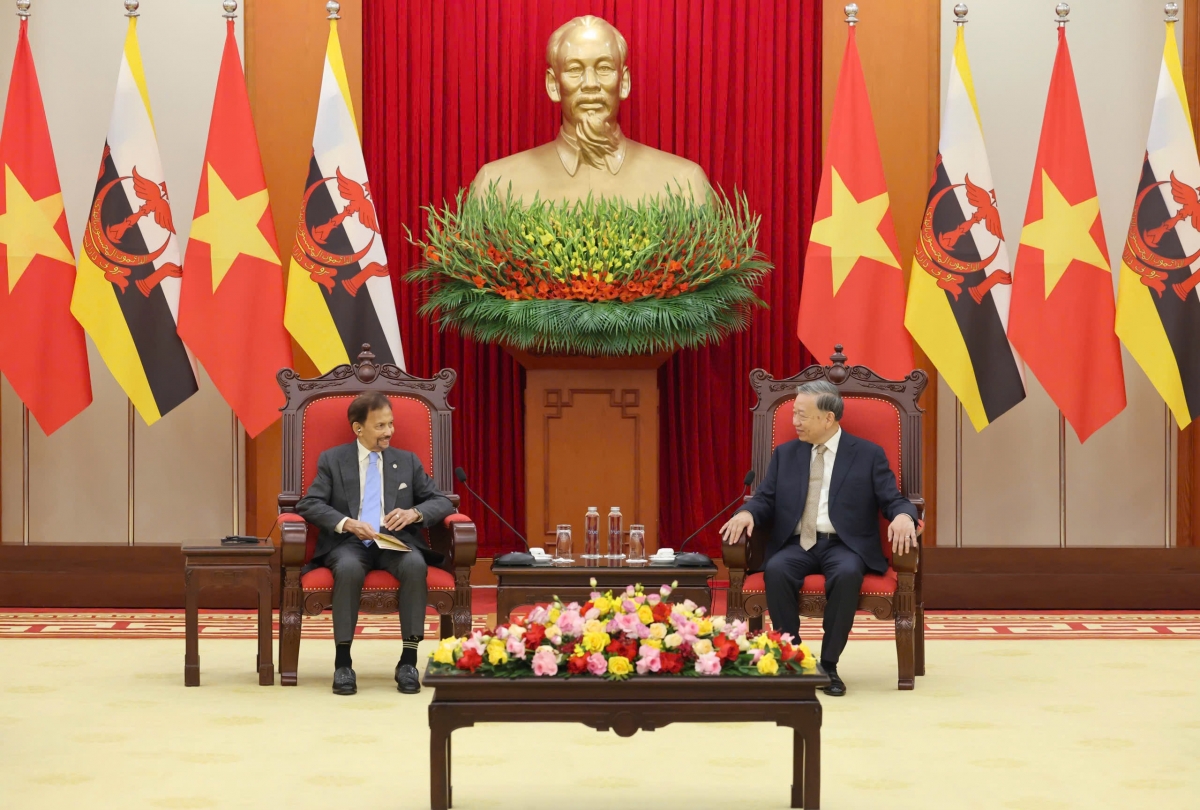 Tổng Bí thư Tô Lâm nhiệt liệt chào mừng Quốc vương Brunei trở lại thăm Việt Nam lần thứ bảy, bày tỏ tin tưởng chuyến thăm lần này sẽ thúc đẩy quan hệ Đối tác Toàn diện Việt Nam – Brunei phát triển ngày càng thực chất và hiệu quả. Tổng Bí thư đánh giá cao những thành tựu mà Brunei đạt được trong xây dựng và phát triển đất nước, nhất là tăng trưởng kinh tế, đảm bảo an sinh xã hội và chỉ số phát triển con người thuộc nhóm “rất cao” trên thế giới; đồng thời chúc Brunei thực hiện thành công Tầm nhìn 2035.