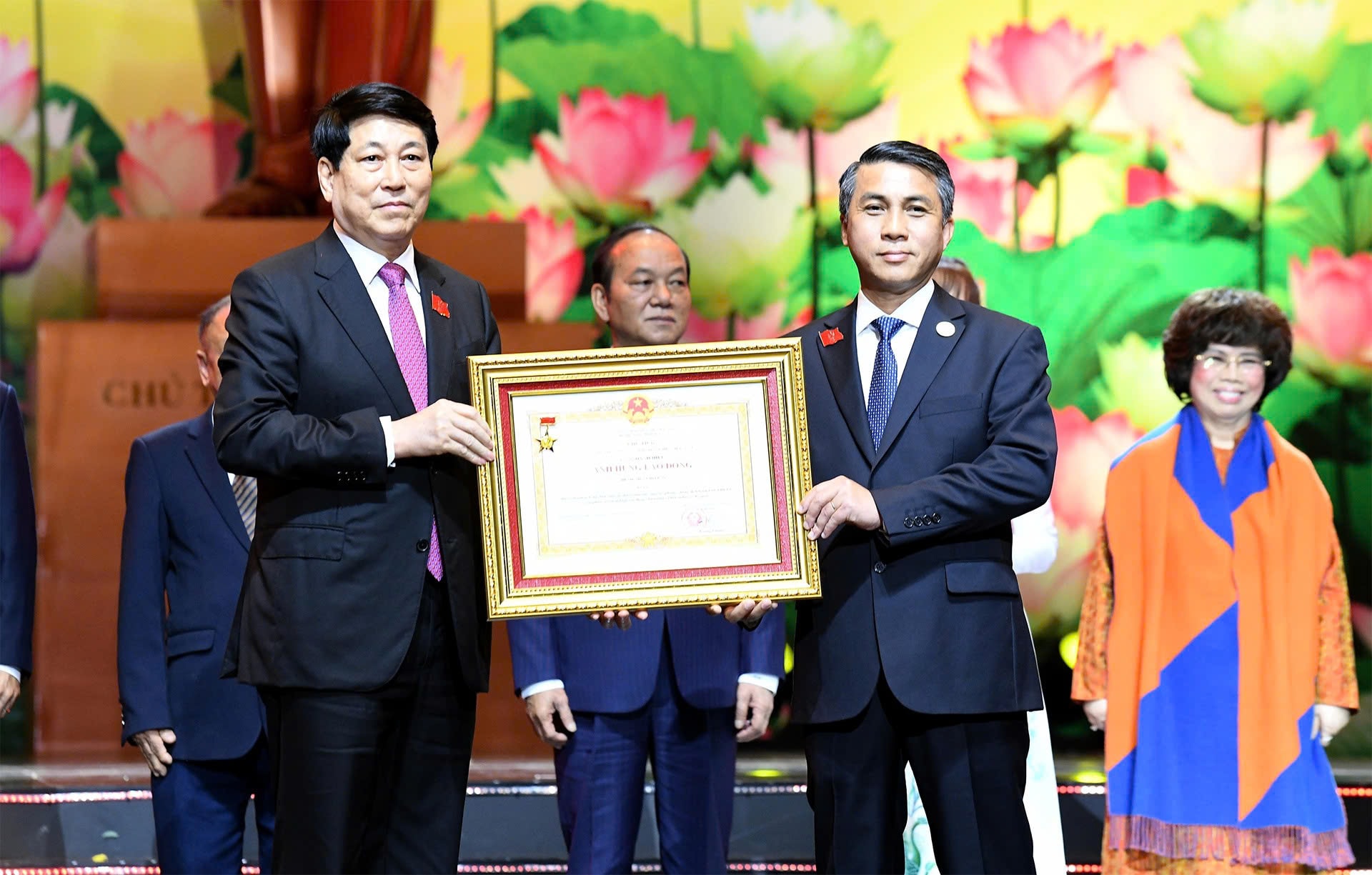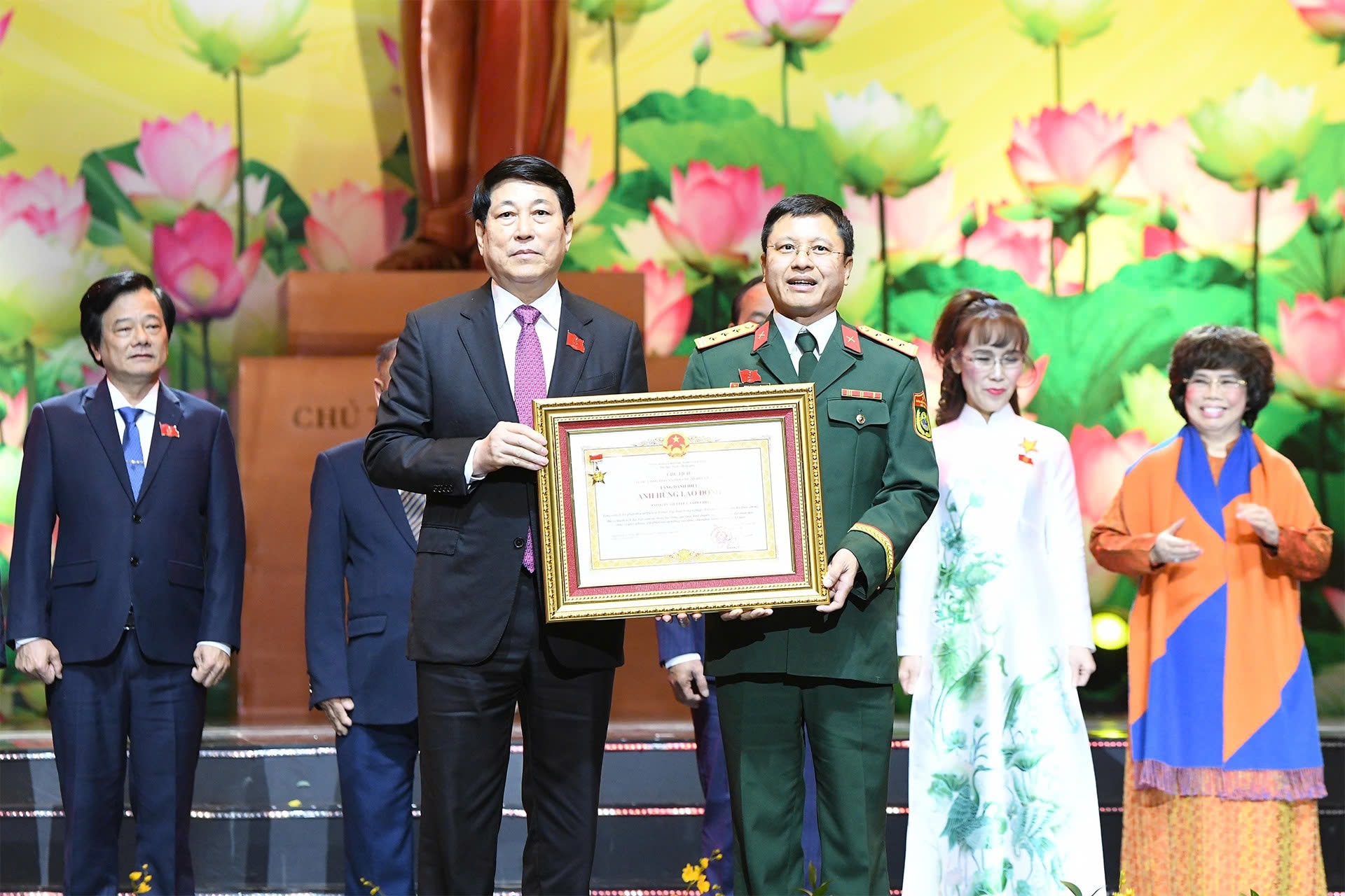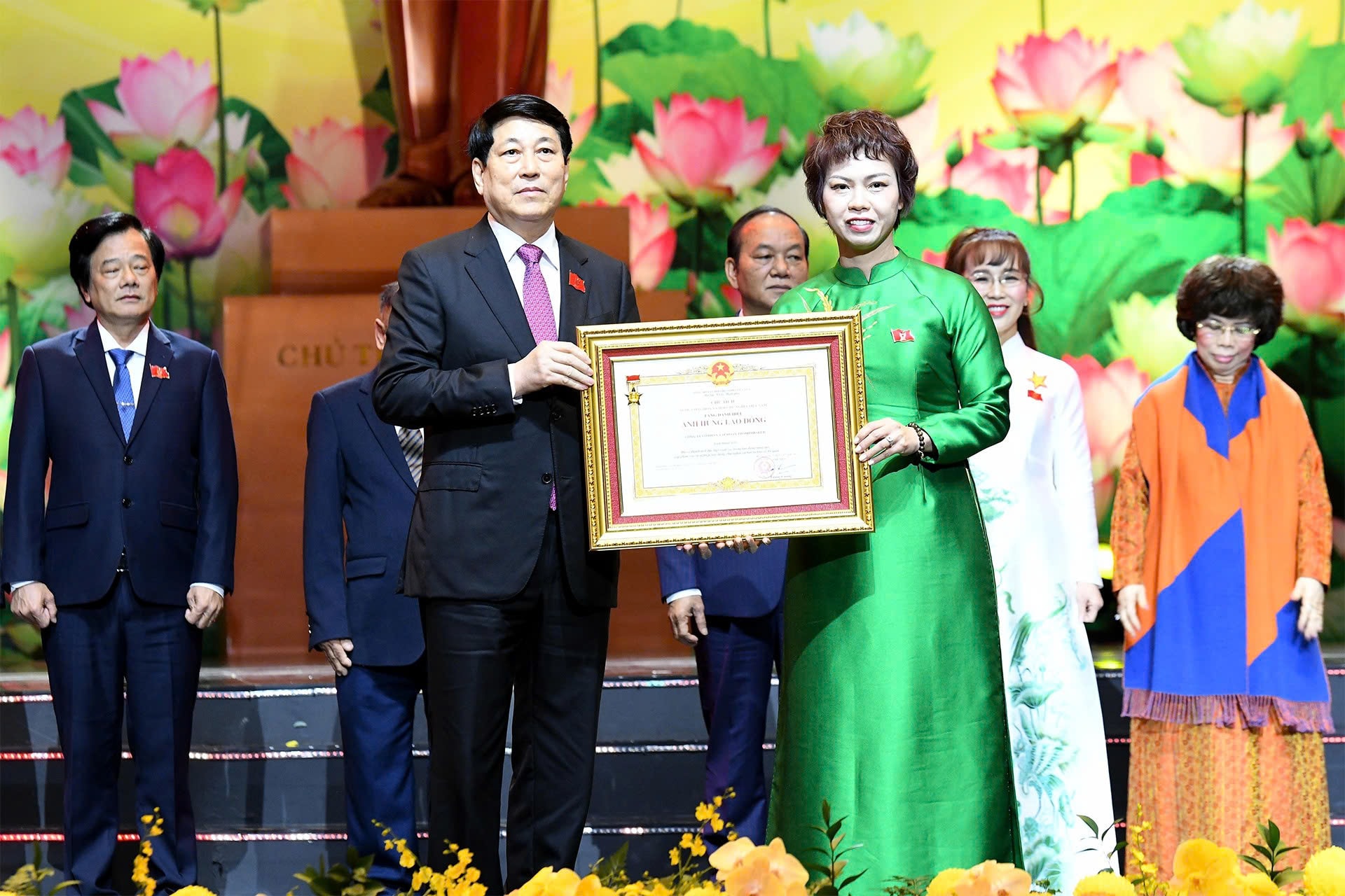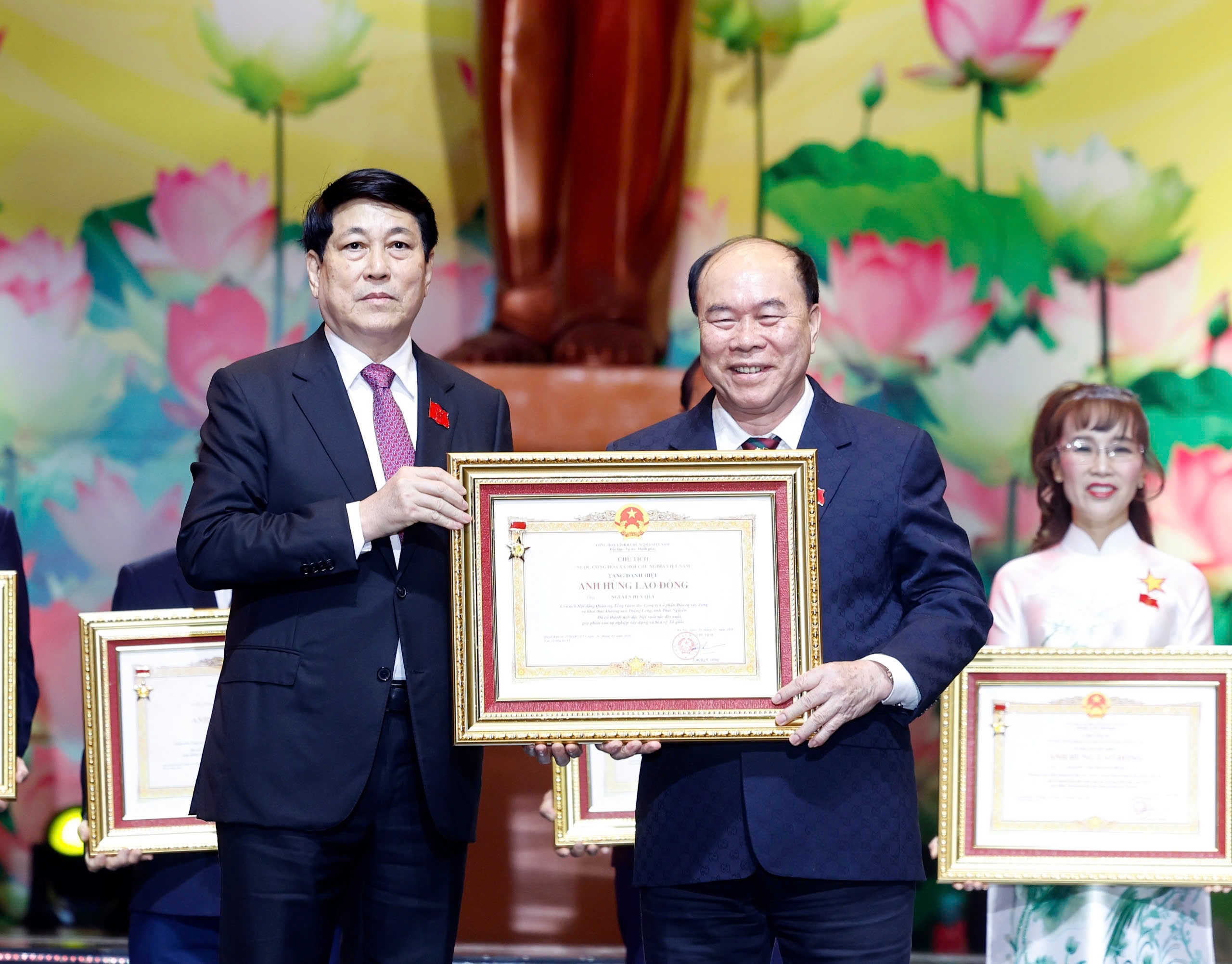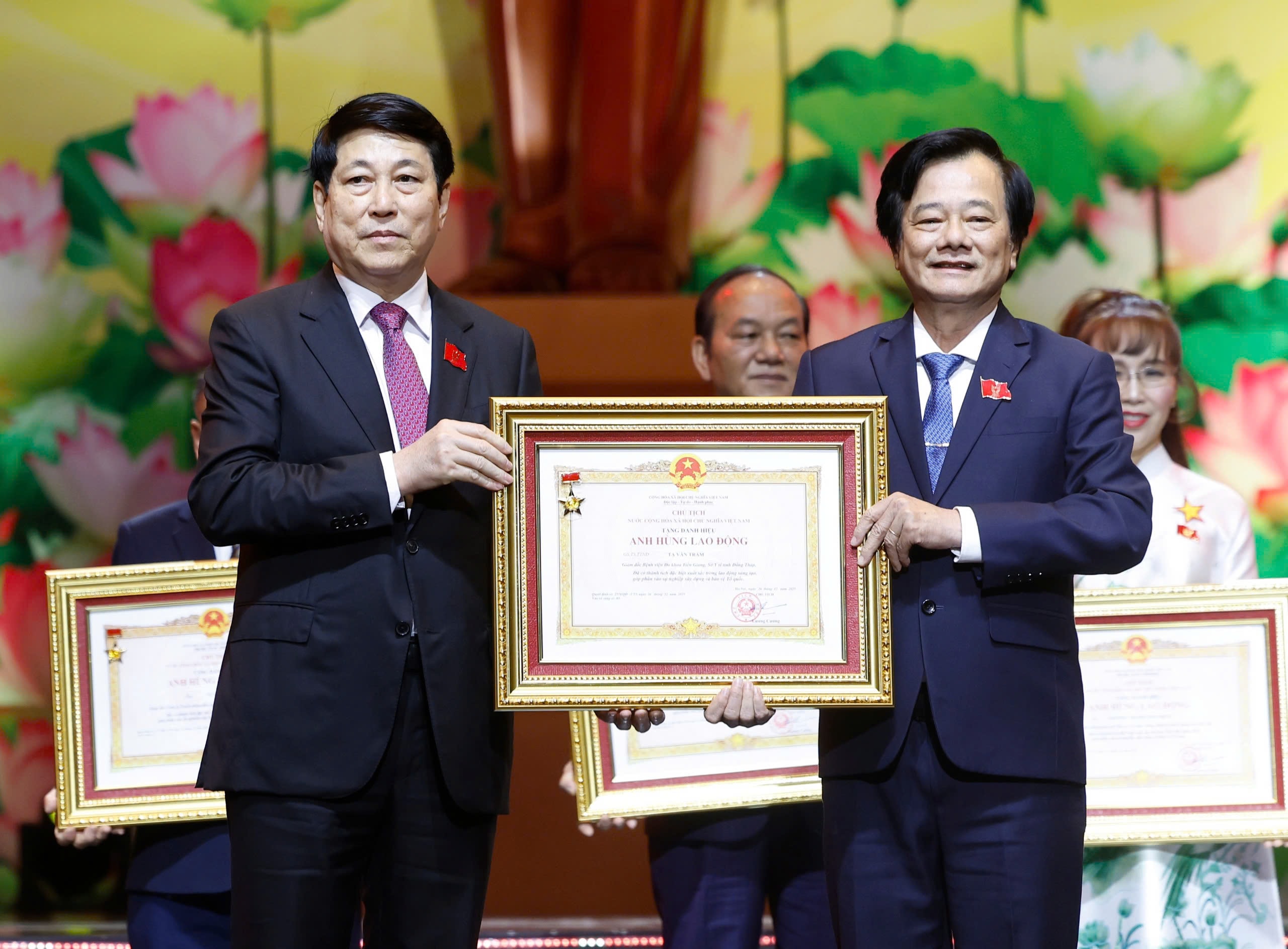 Chủ tịch nước Lương Cường trao Danh hiệu Anh hùng Lao động cho các cá nhân có thành tích đặc biệt xuất sắc. Ảnh: Lâm Hiển