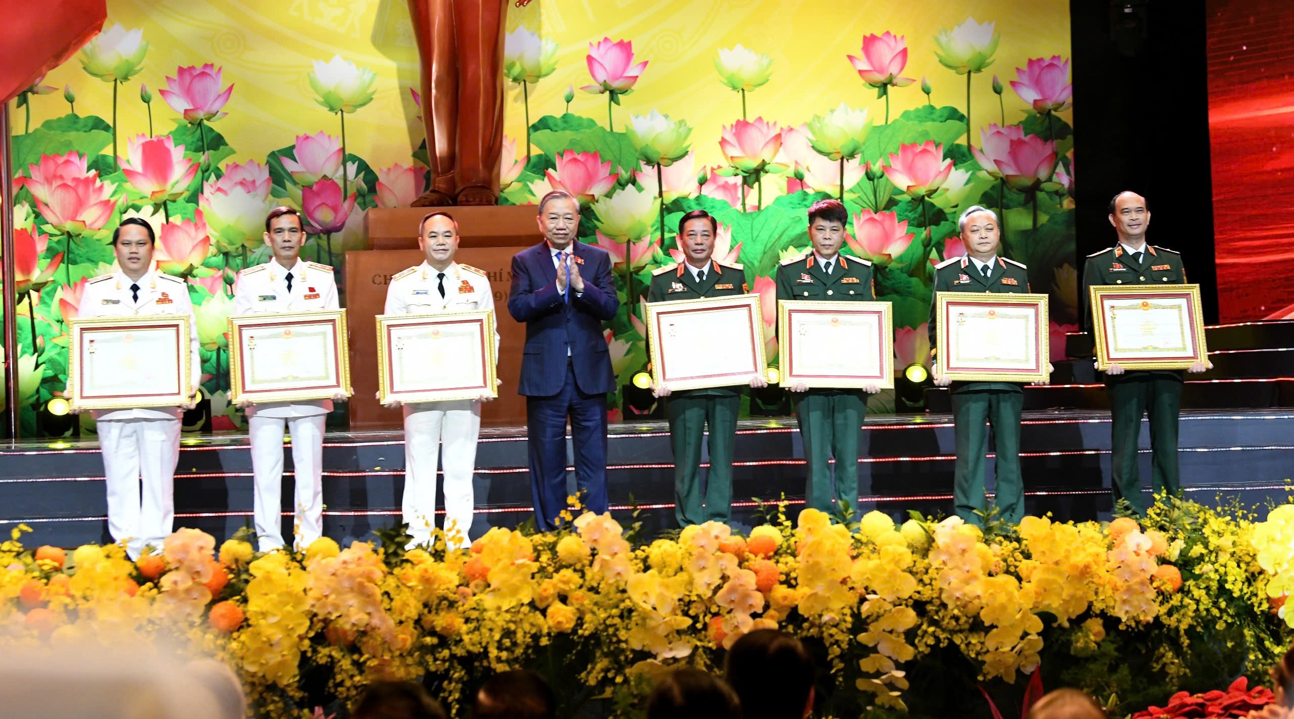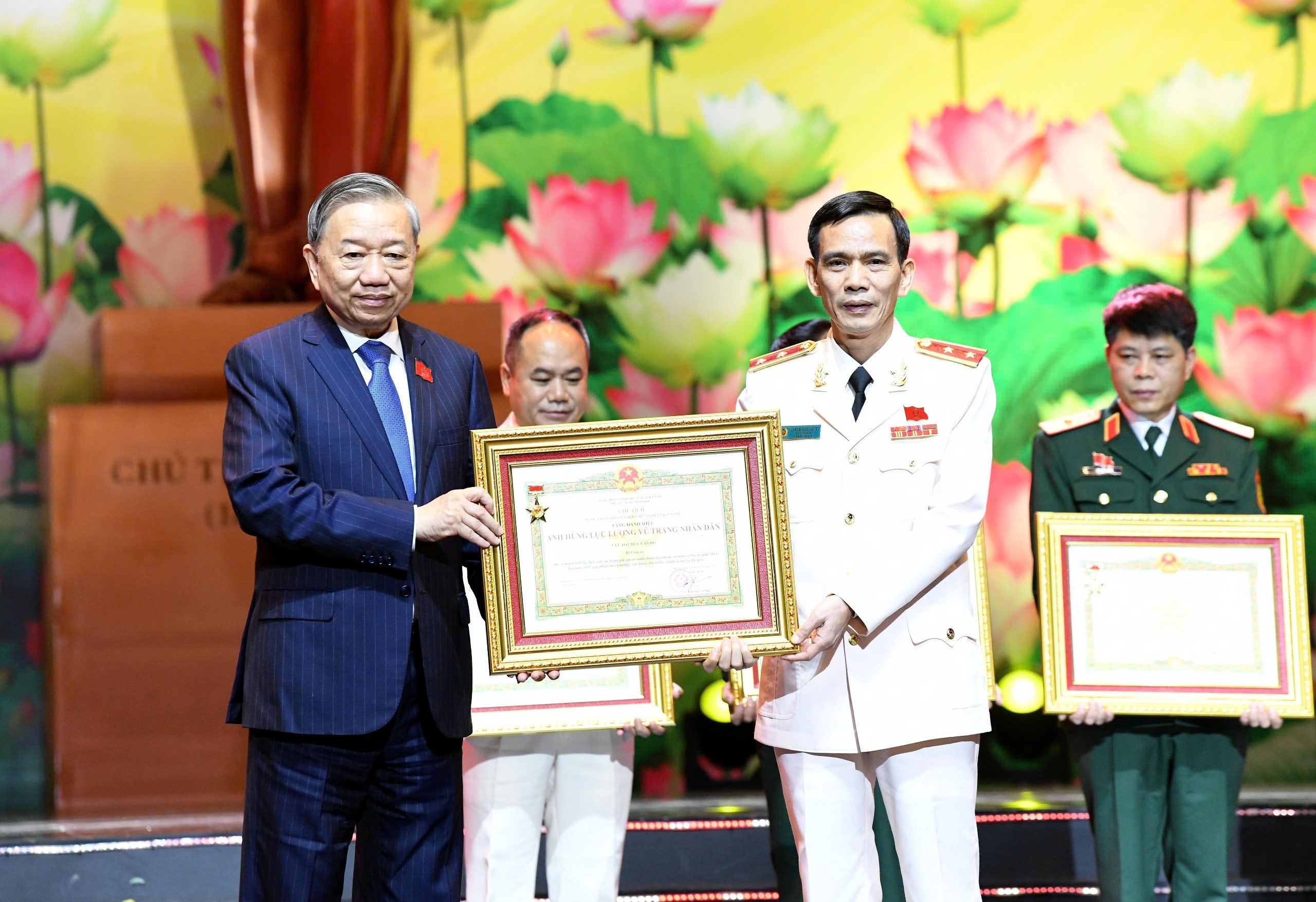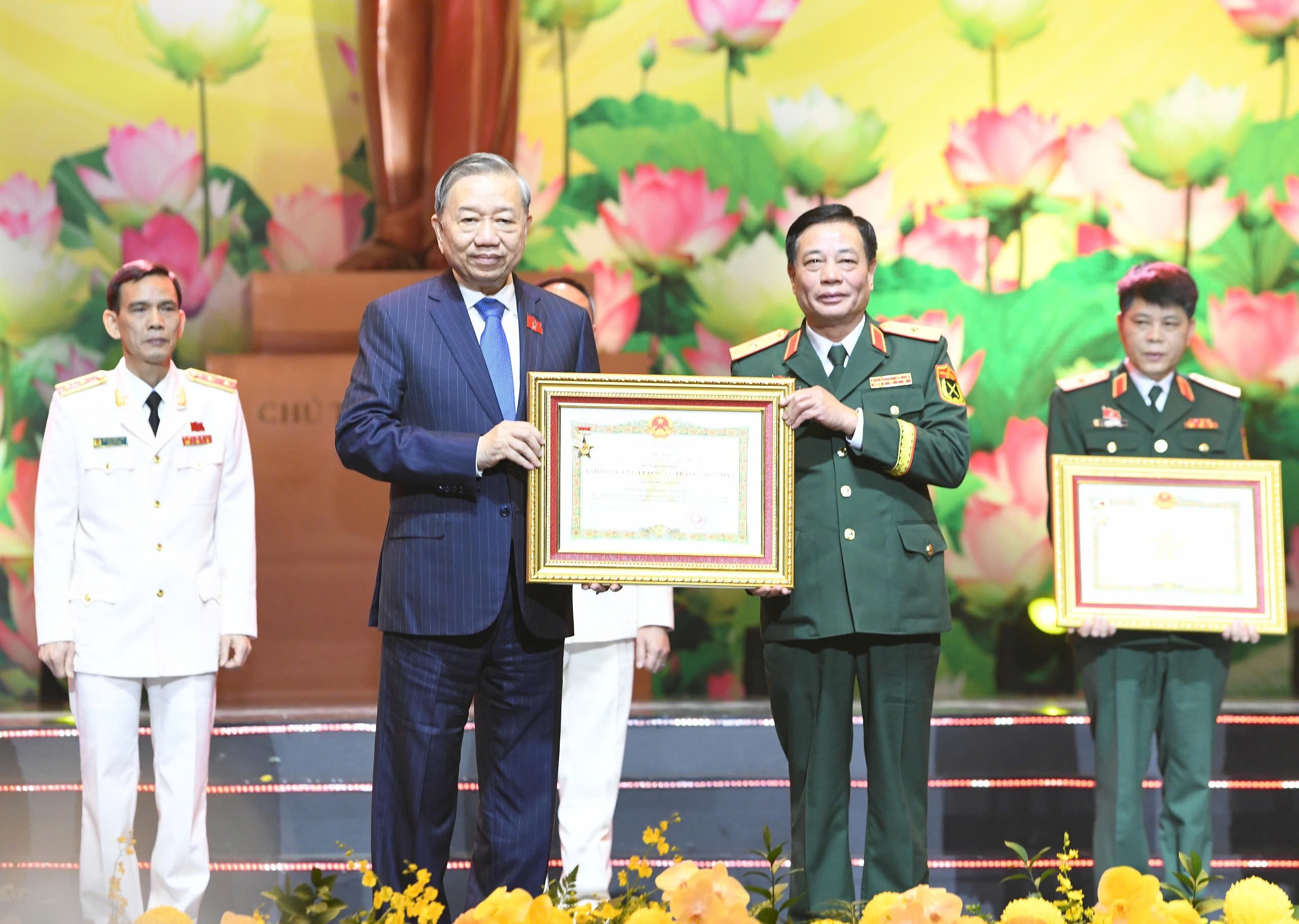 Tổng Bí thư Tô Lâm trao Danh hiệu Anh hùng Lực lượng vũ trang nhân dân cho các tập thể, cá nhân. Ảnh: Lâm Hiển