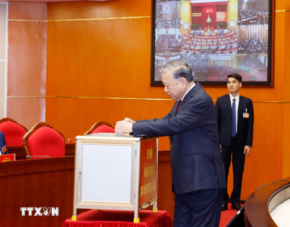 Tổng Bí thư Tô Lâm quyên góp ủng hộ đồng bào chịu ảnh hưởng bởi bão lũ lụt. (Ảnh: Phương Hoa/TTXVN)