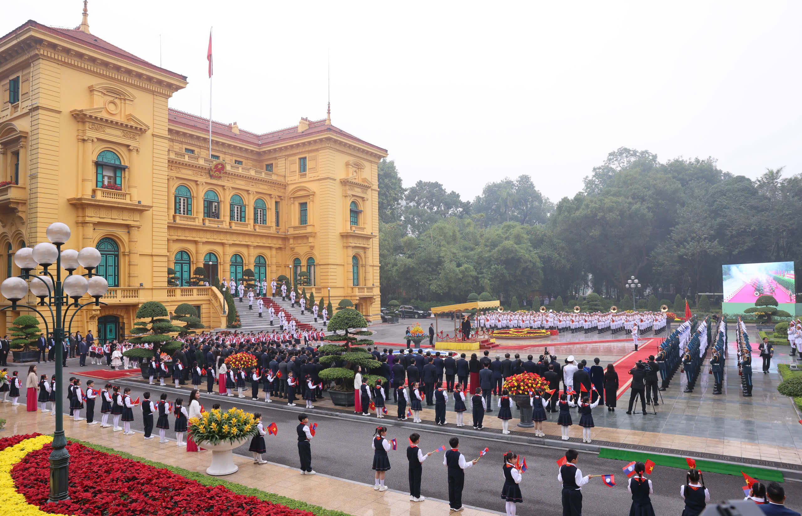 Toàn cảnh lễ đón tại Phủ Chủ tịch. Ảnh: QUANG PHÚC