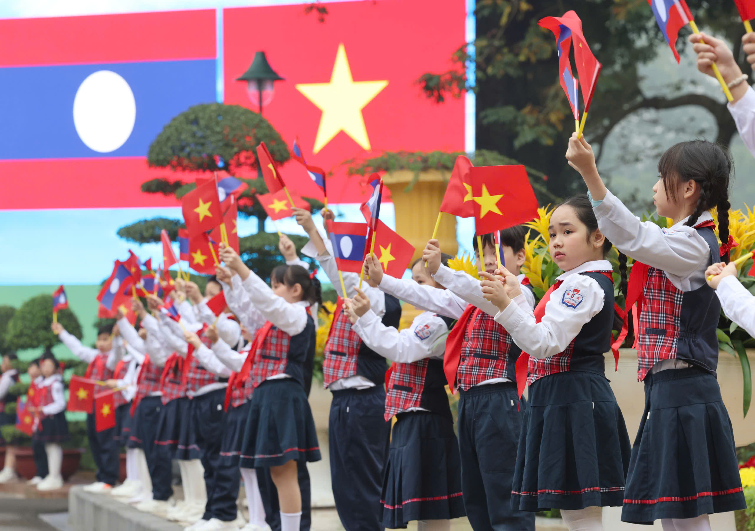 Từ đầu giờ sáng, đông đảo các em thiếu niên, học sinh và người dân Thủ đô với cờ Việt Nam, Lào và những bông hoa tươi thắm trên tay đứng dọc hai bên đường Hoàng Văn Thụ dẫn vào Phủ Chủ tịch hân hoan chào đón Tổng Bí thư Đảng Nhân dân Cách mạng Lào, Chủ tịch nước Cộng hòa Dân chủ Nhân dân Lào Thongloun Sisoulith cùng phu nhân và đoàn đại biểu cấp cao Đảng, Nhà nước Lào.
